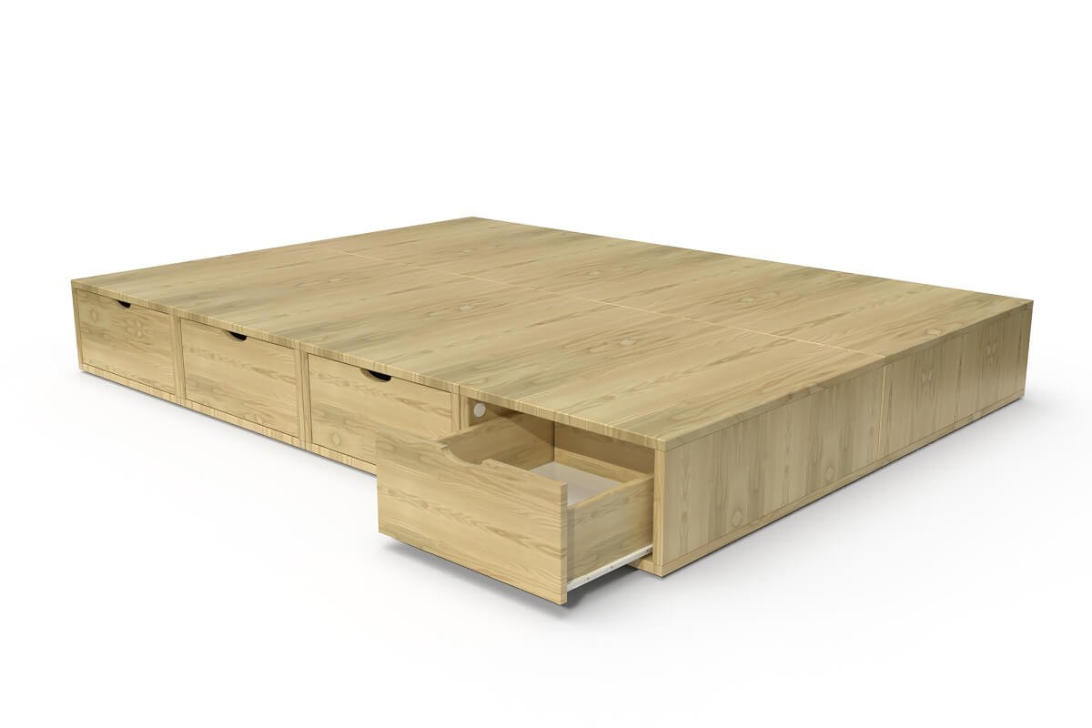 Lit double avec rangement tiroirs Cube, Couleur: Miel, Dimensions: 140x200