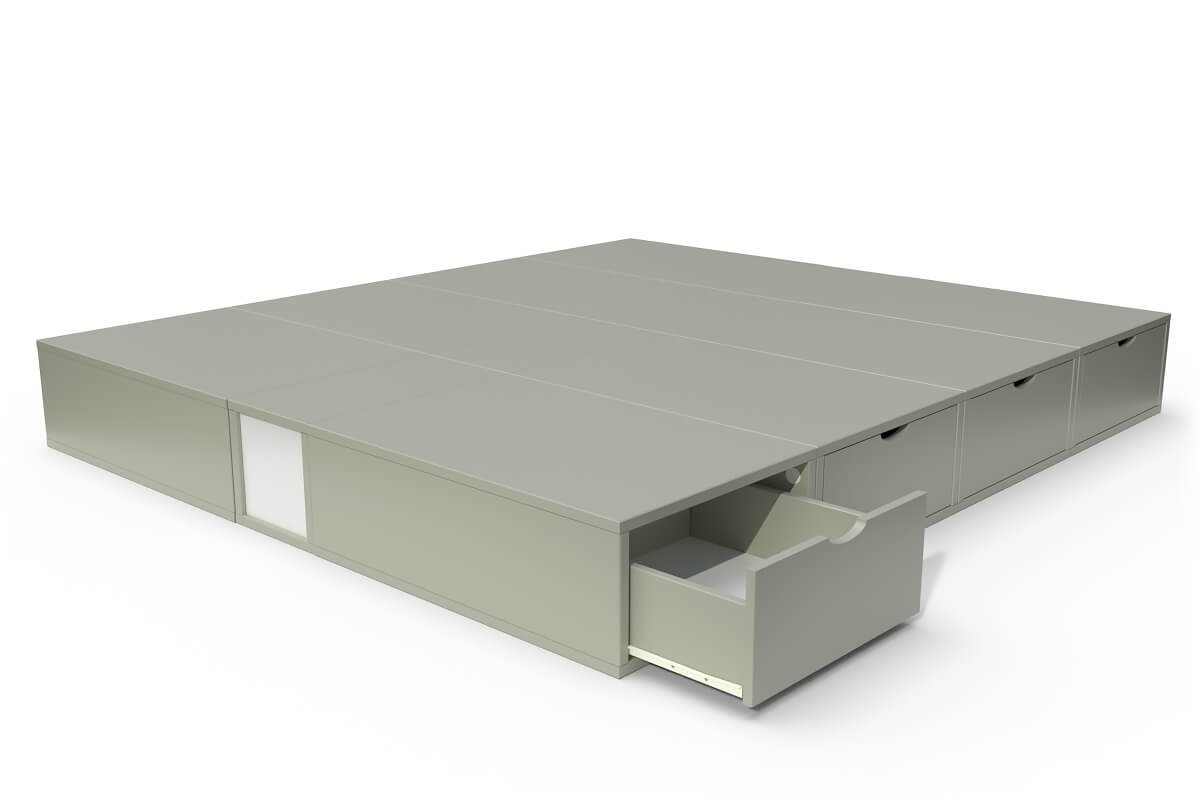 Donnez du style et des rangements à votre chambre avec le Lit Cube + Tiroirs. Vous avez le choix entre 22 couleurs et 9 finitions bi-couleurs. Pratique, vous disposez de 8 tiroirs pour ranger toutes vos affaires.Pas besoin de sommier, vous posez le matelas directement sur les cubes.Astuce : vous pouvez ajouter des cubes de hauteur 75 cm pour composer une tête de lit (3 cubes pour la tête du lit 140x200 cm et 4 pour le modèle en 160x200 cm). Installation obligatoire contre un mur.En pin massif écologique avec du vernis à l'eau.Fond en isorel.Existe aussi en : Lit cube 90x200 1 place + tiroirs Dimensions du couchage Idéal pour un matelas de : Dimensions hors-tout Poids 150x200 cm 140x200 cm H/L/P : 25 / 200 / 150 128 kg 175x200 cm 160x200 cm H/L/P : 25 /200 / 175 148 kg