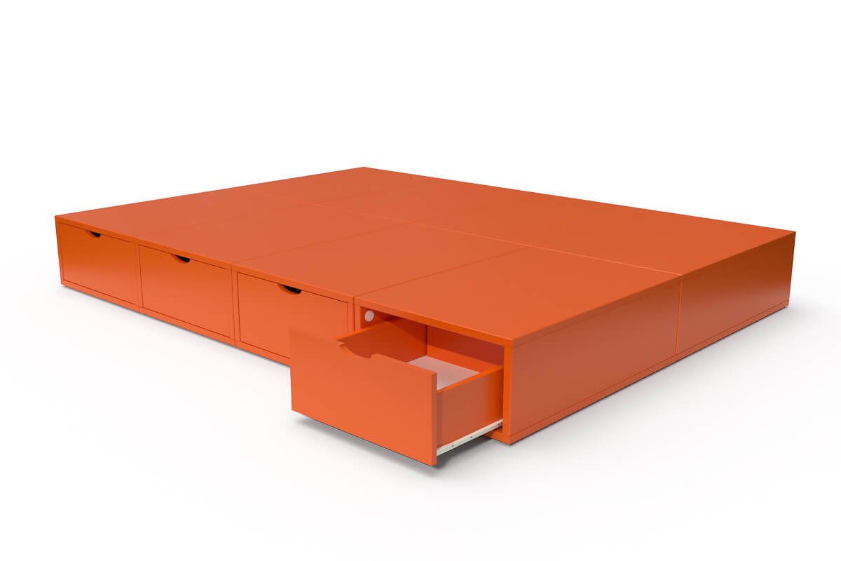 Lit double avec rangement tiroirs Cube, Couleur: Orange, Dimensions: 140x200