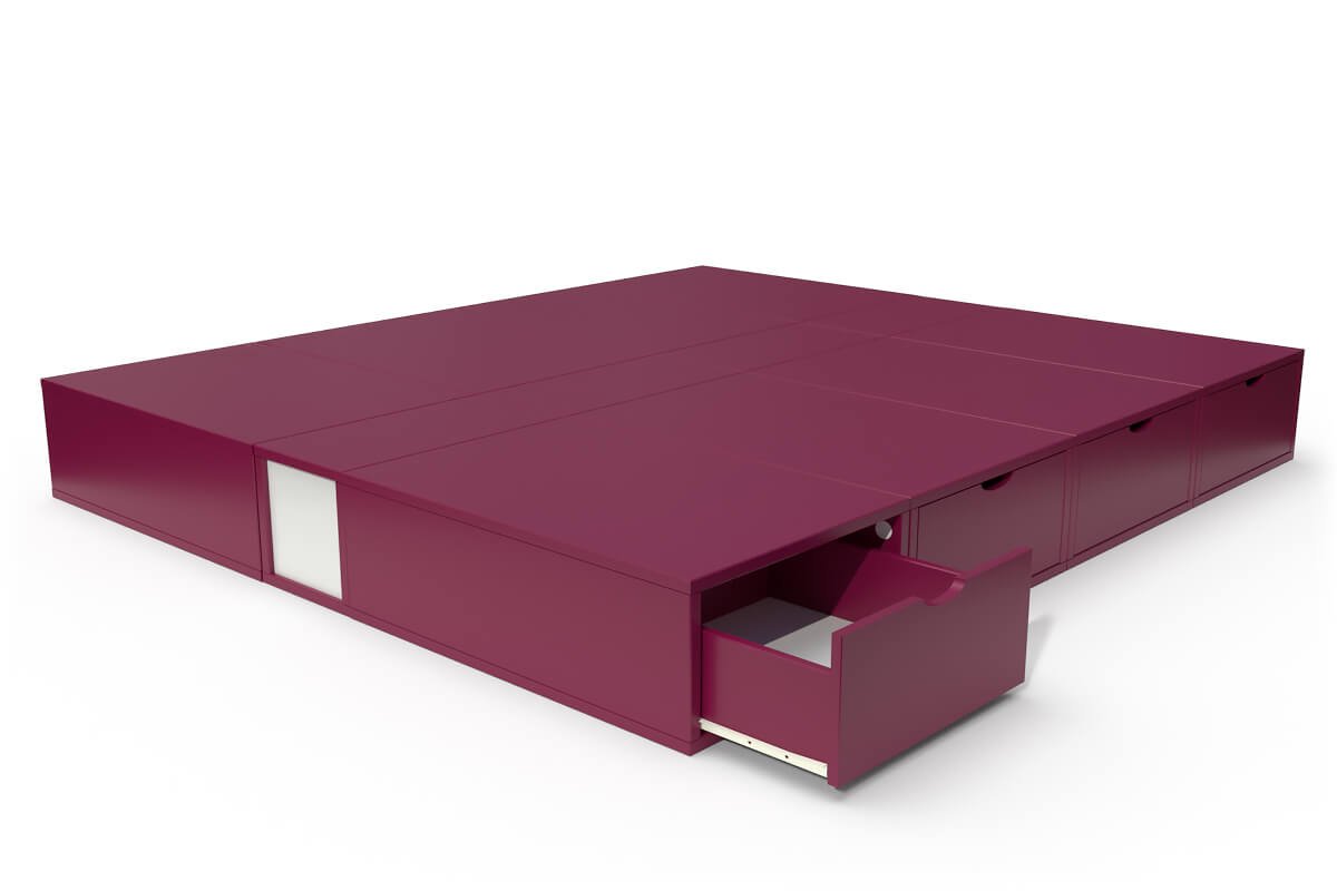 Lit double avec rangement tiroirs Cube, Couleur: Prune, Dimensions: 160x200