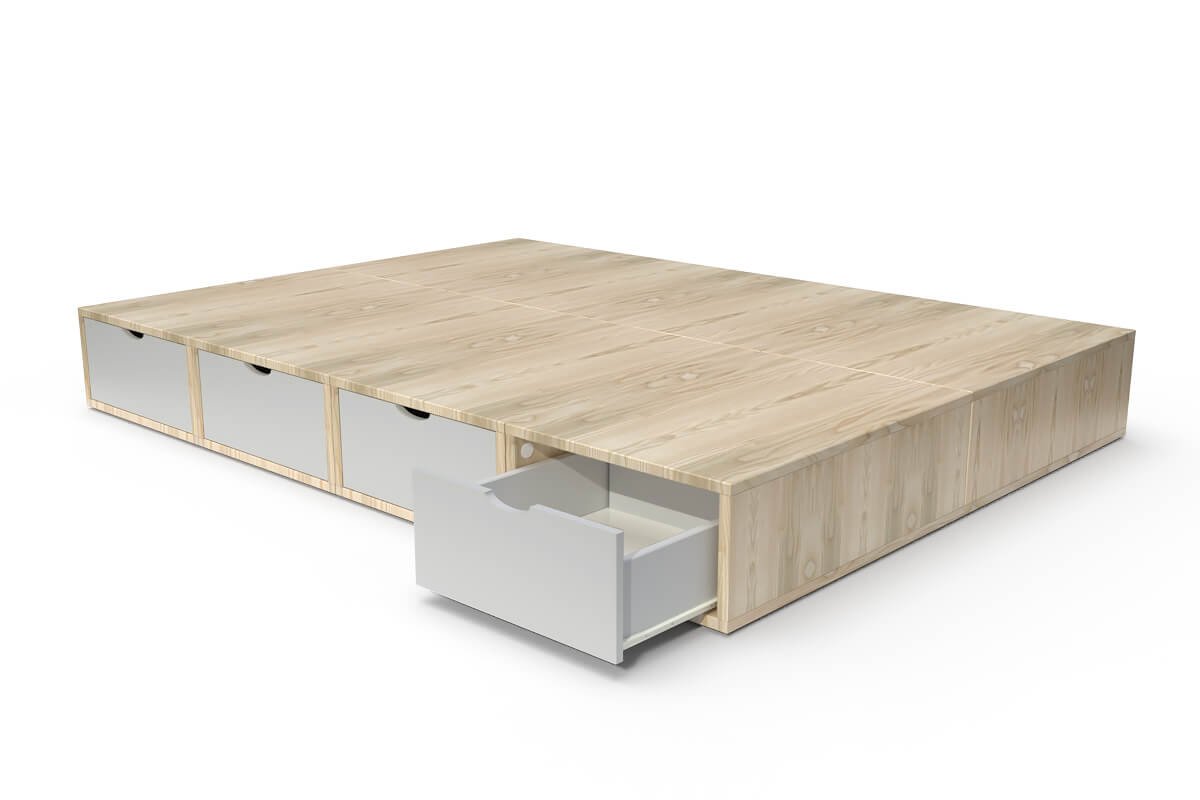 Lit double avec rangement tiroirs Cube, Couleur: Vernis naturel/Gris souris, Dimensions: 140x200