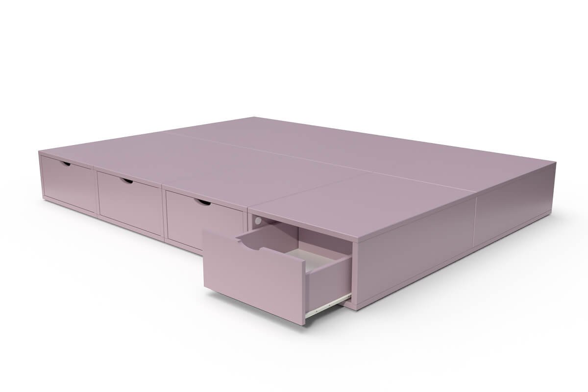 Lit double avec rangement tiroirs Cube, Couleur: Violet Pastel, Dimensions: 140x200