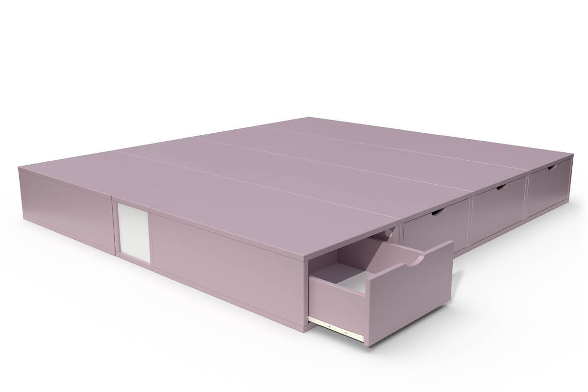 Lit double avec rangement tiroirs Cube, Couleur: Violet Pastel, Dimensions: 160x200