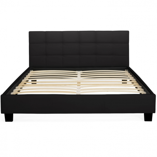 Lit double CHARLOTTE avec sommier 140x190cm PVC noir pour des nuits confortables
