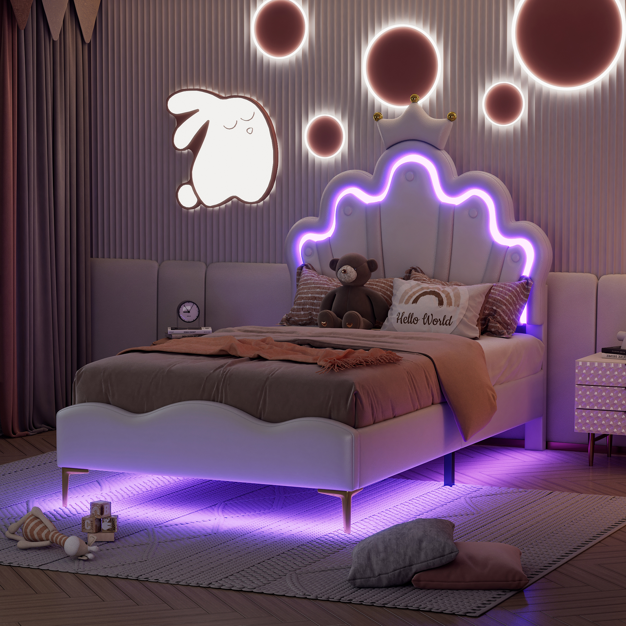 | Libellé | Lit double plat 90*200cm, lit princesse en de couronne, bande lumineuse LED d'ambiance réglable |