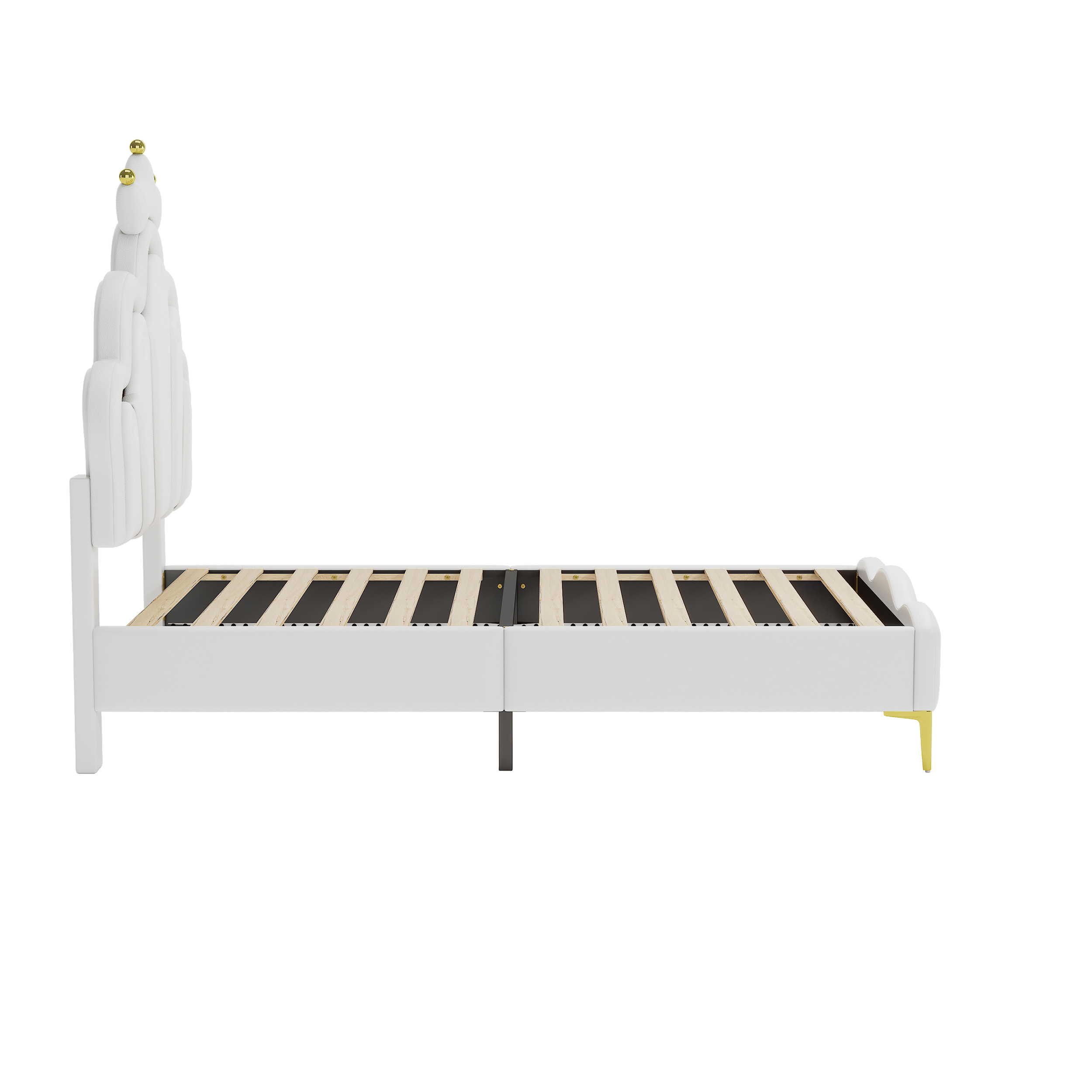 Lit double plat 90 x 200 cm, lit princesse en forme de couronne, revêtement en PU souple