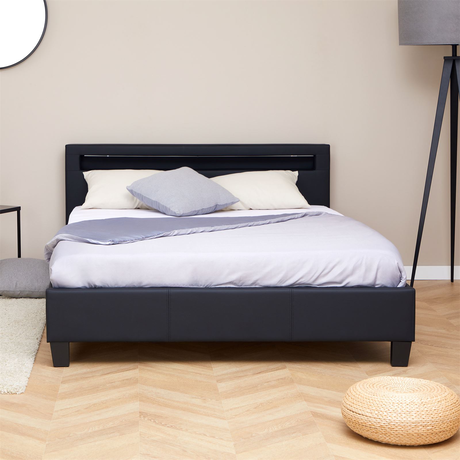 | Libellé | Lit double pour adulte PINOT avec sommier cm 2 places 2 personnes, tête de lit avec LED intégrées, en synthétique noir |