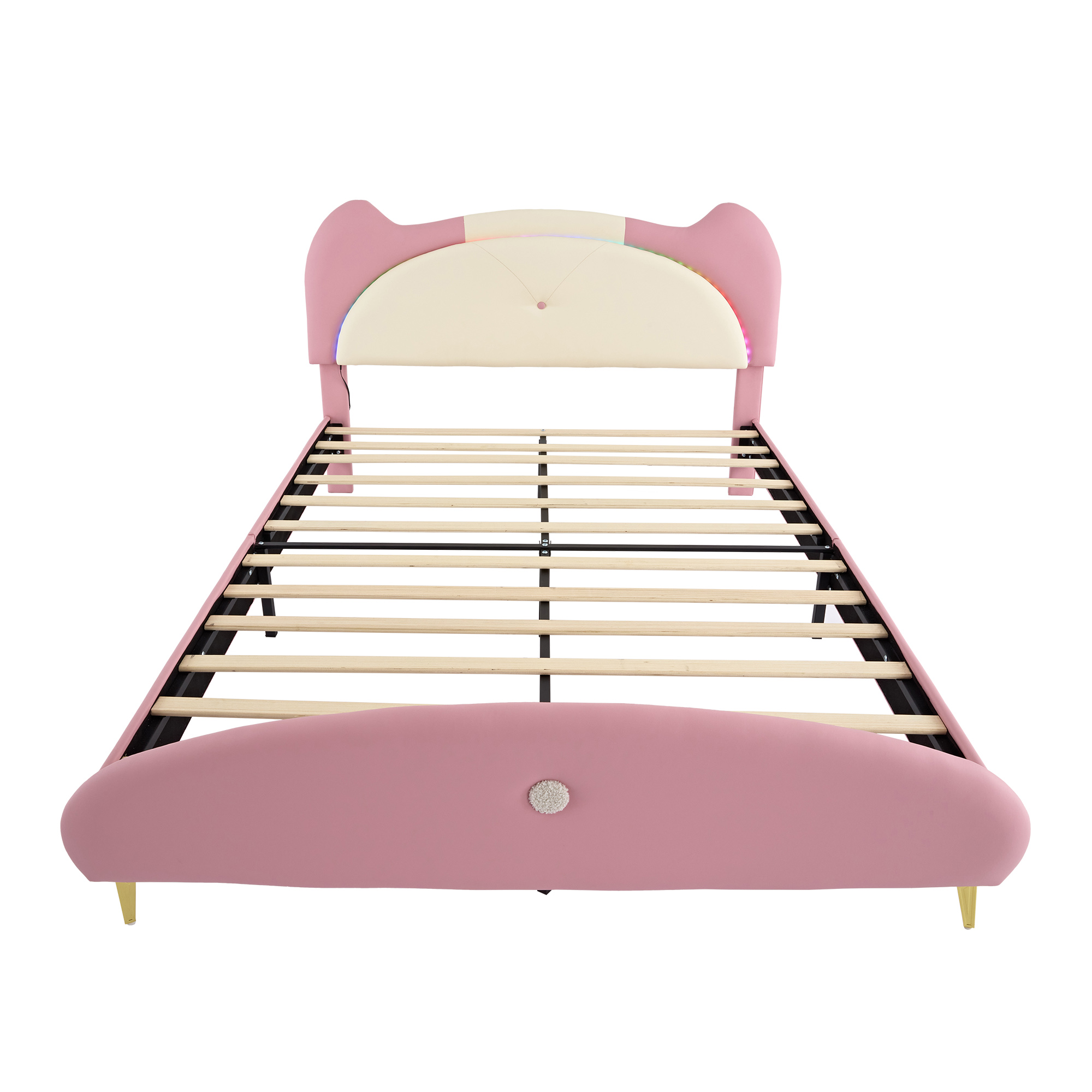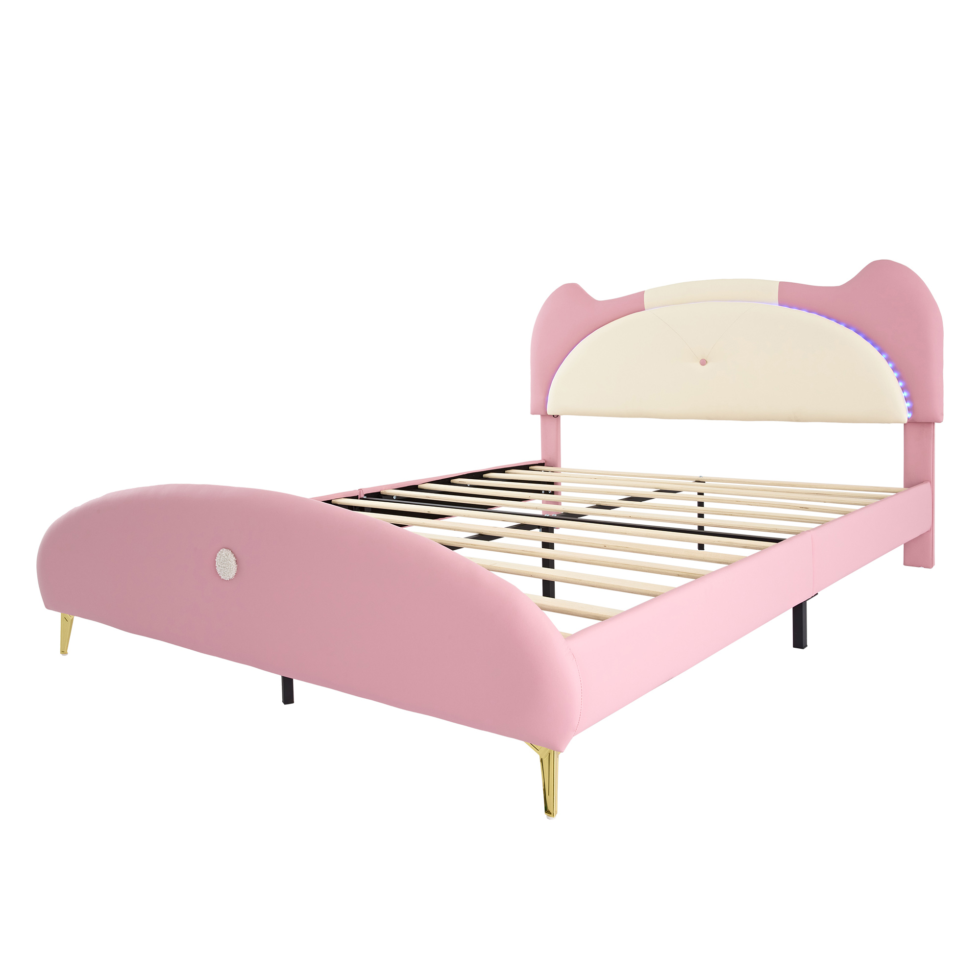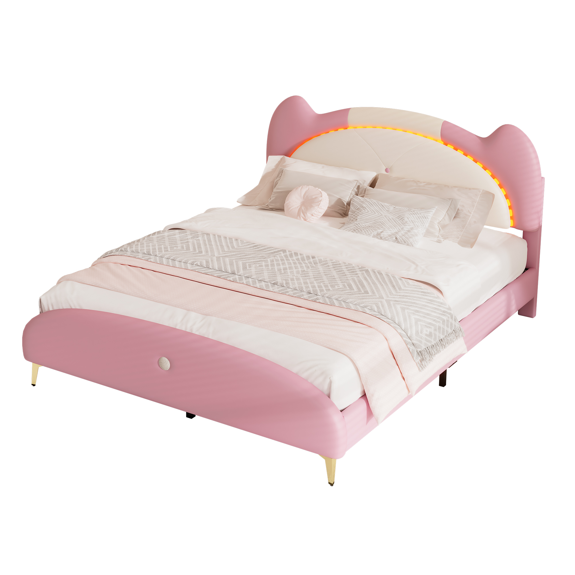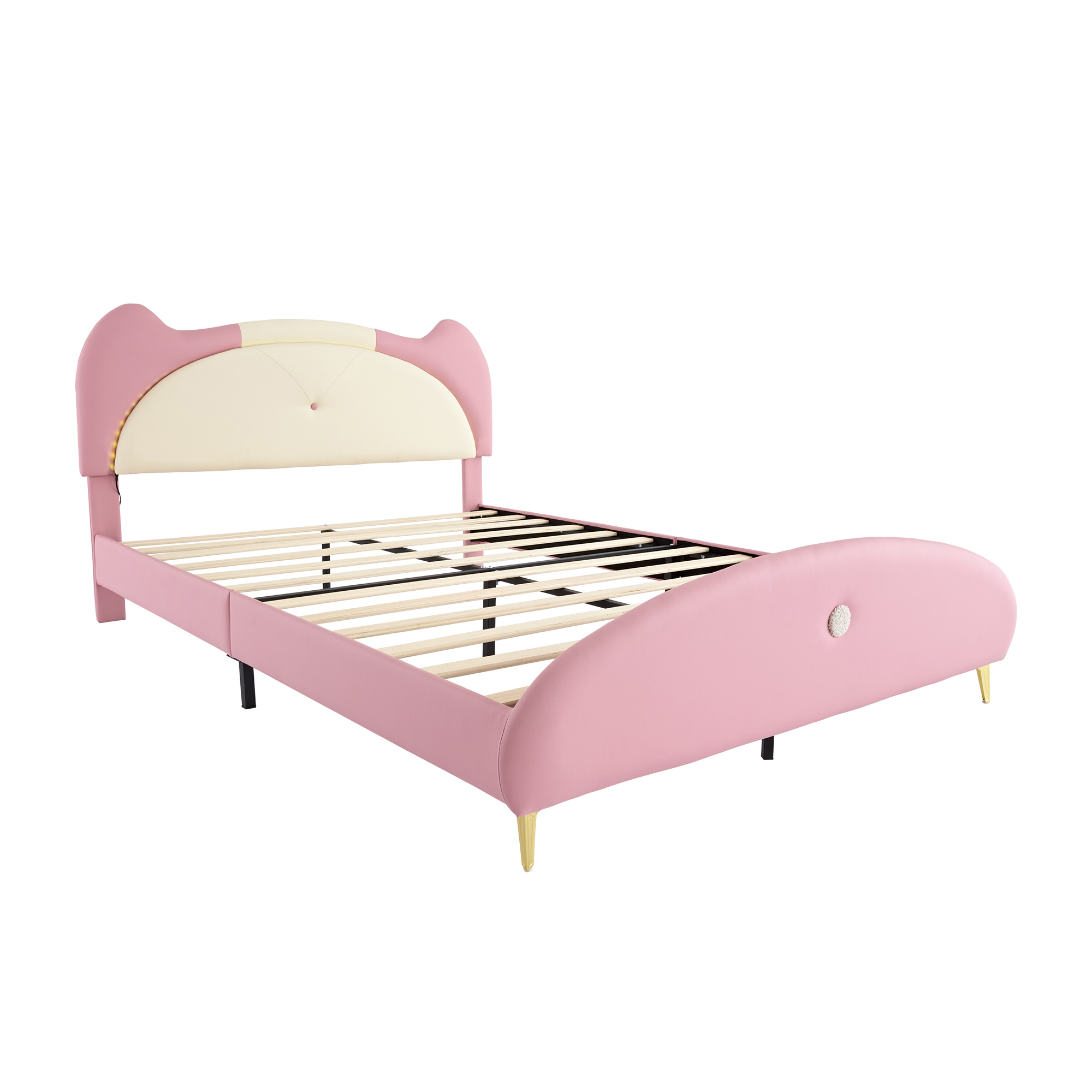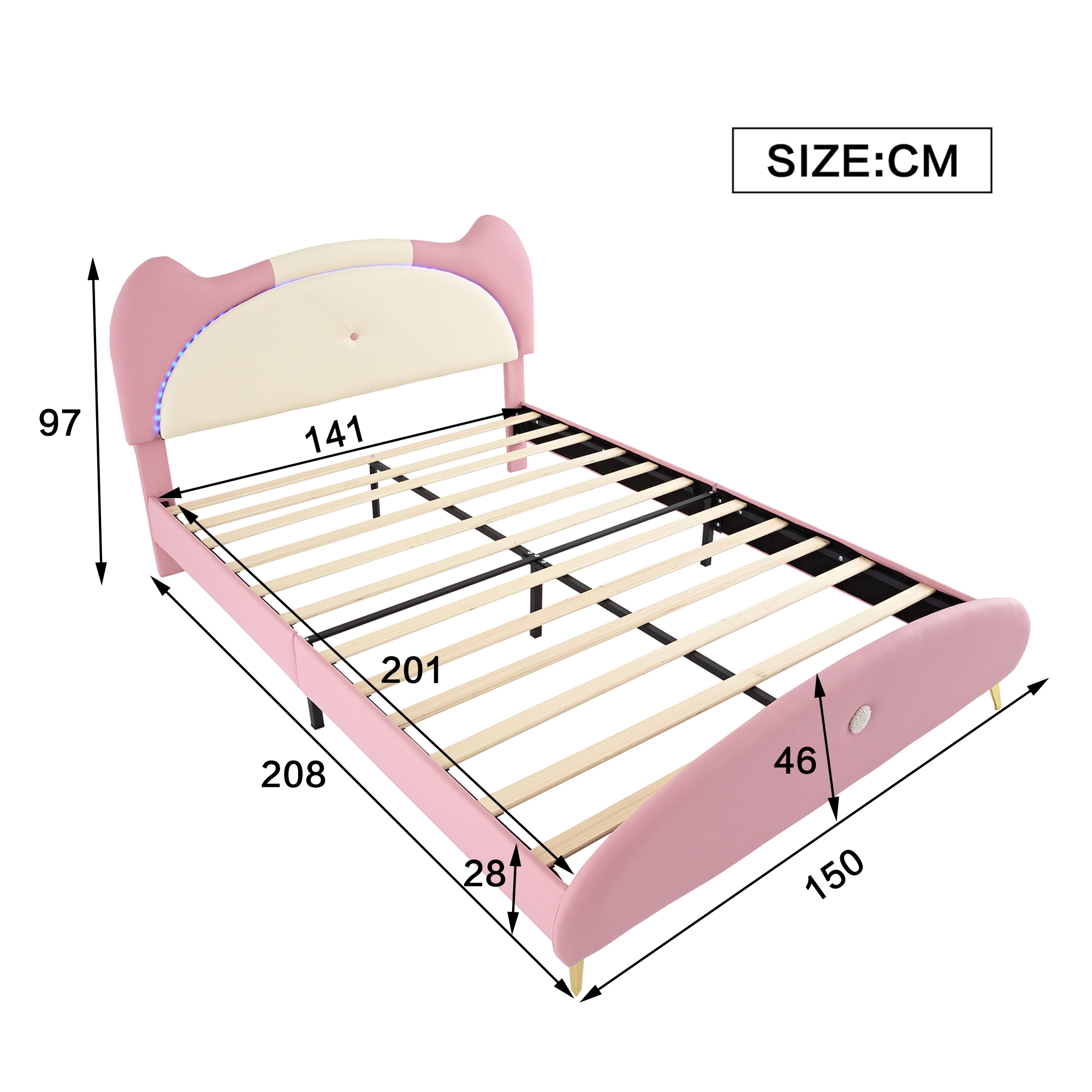 Un design adorable : ce lit double convient à des matelas de 140*200cm. La jolie tête de lit rose a une belle forme avec deux coins pointus à gauche et à droite, des coussins rembourrés et remplis de mousse sont fournis.