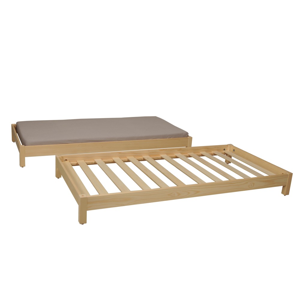 Lit empilable JONAS 90x190 (lot de deux lits)+ 2 sommiers / Naturel