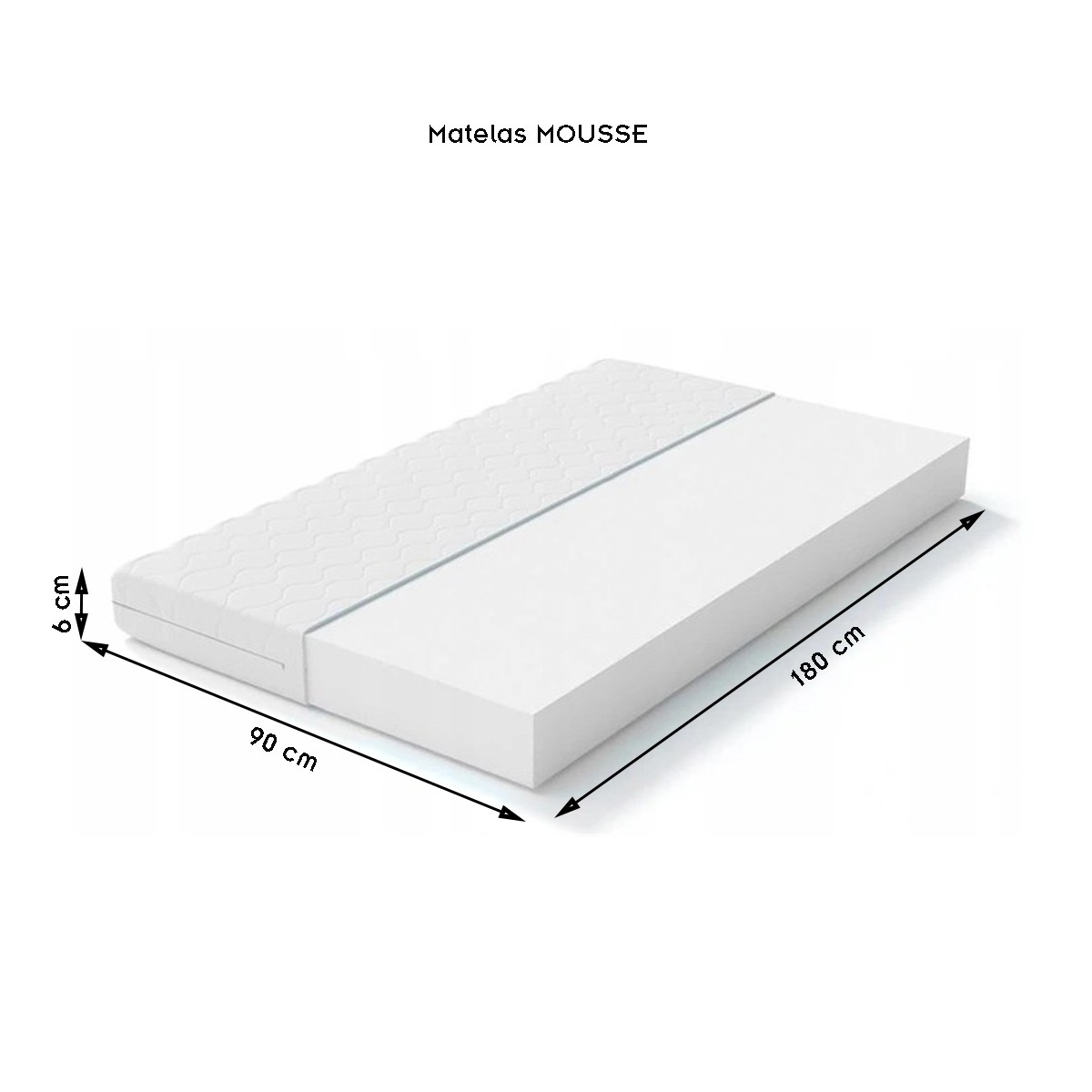 Ce lit est vendu avec un matelas, disponible dans plusieurs textures, dont la housse amovible est lavable.