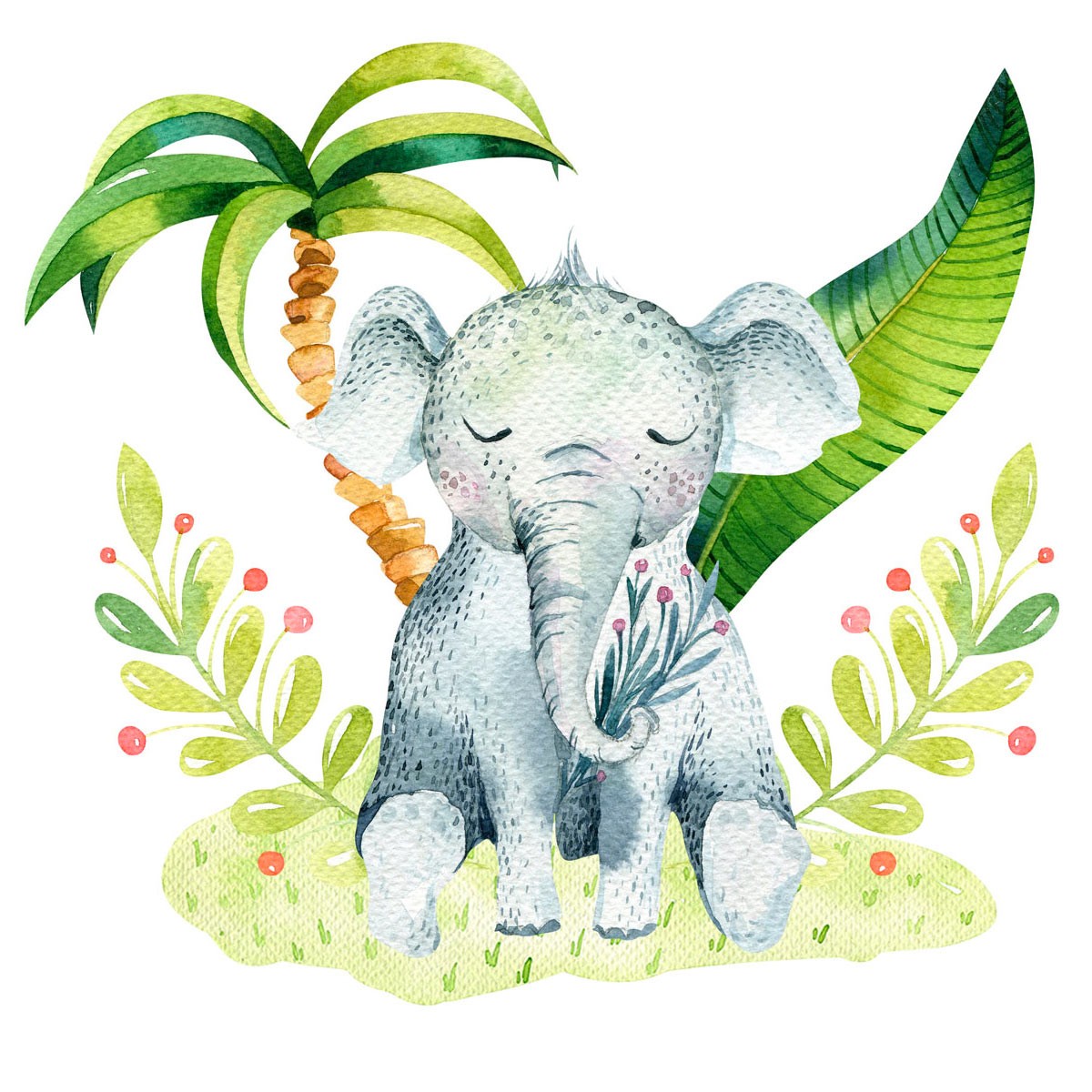 La tête et le pied de lit sont décorés d'un motif éléphant aux couleurs pastel.