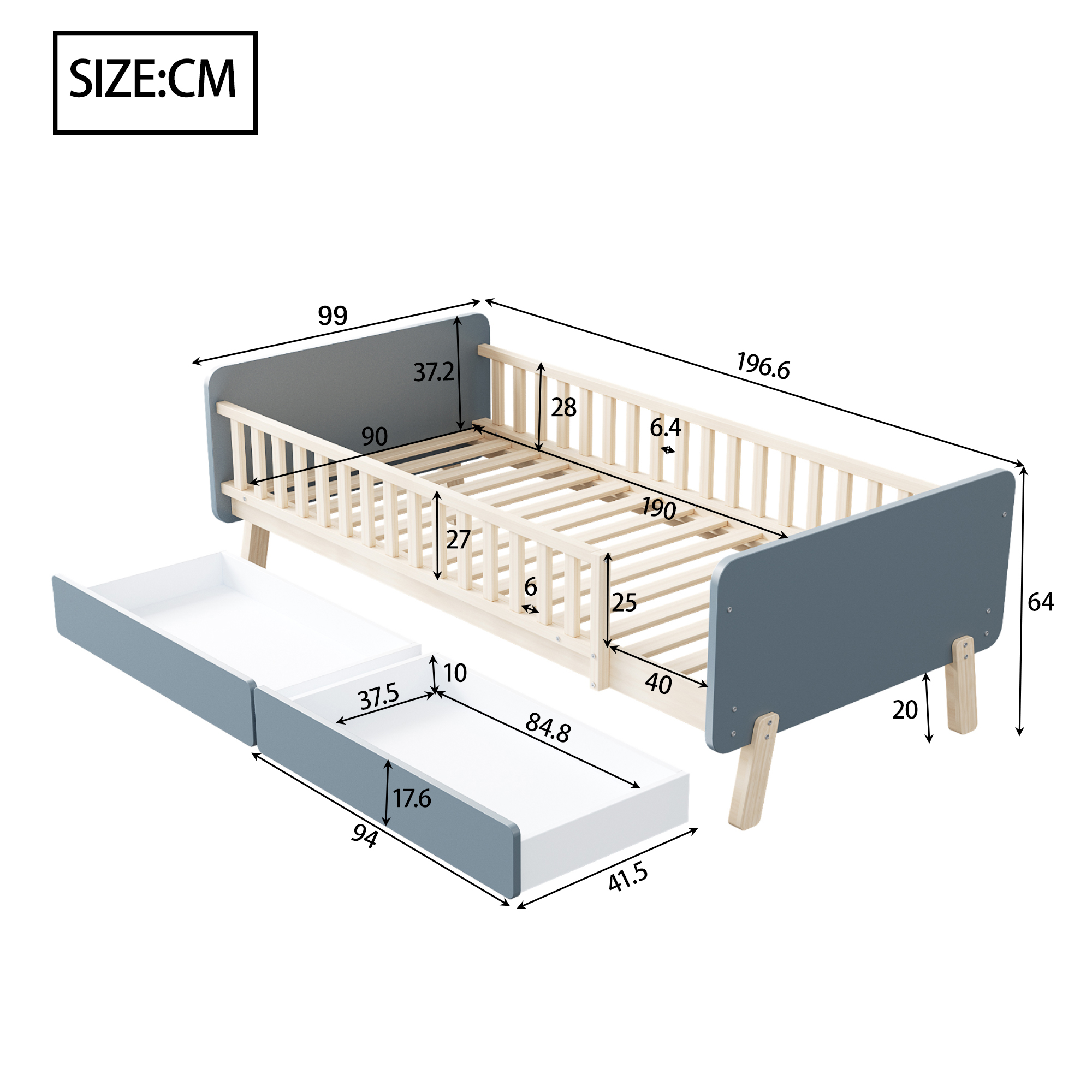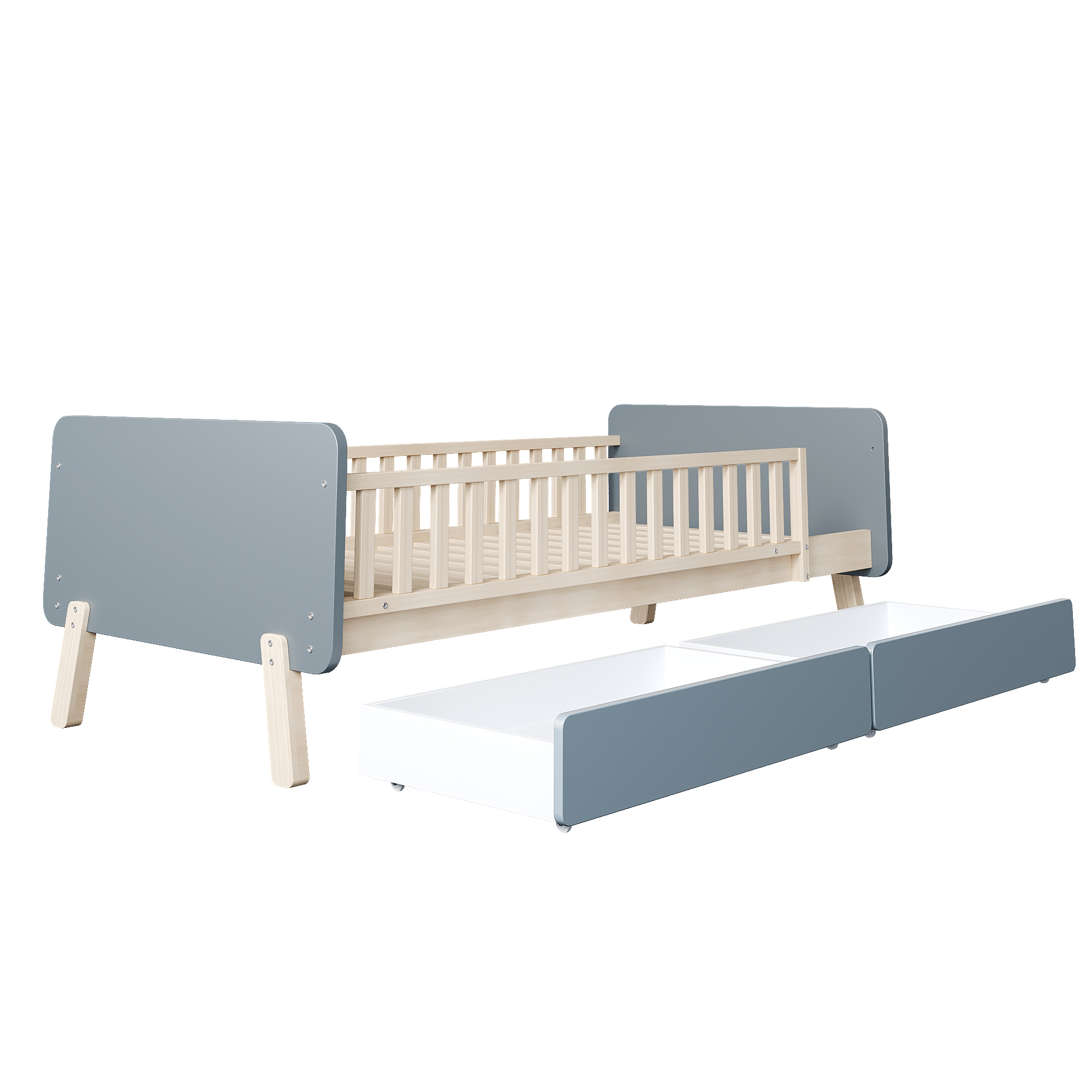 | Libellé | Lit enfant 90x190 avec 2 tiroirs, lit simple en bois massif avec sommier à lattes, gris |