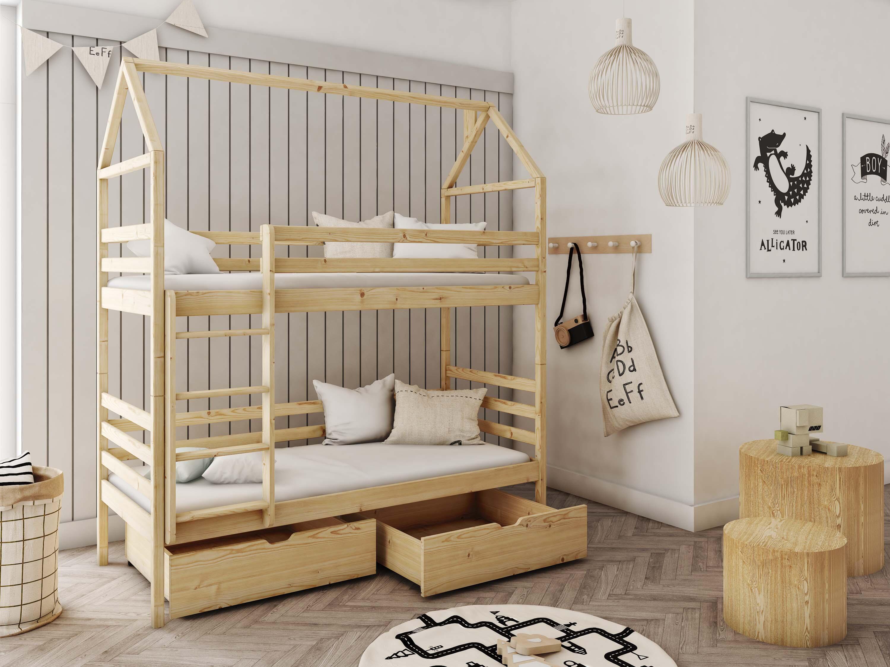 Stimulez votre imagination avec le lit cabane ALEX en pin, un complément parfait pour les enfants aventureux. Dimensionné pour 80x200, ce lit cabane en bois massif est aussi amusant que fonctionnel, faisant de l'heure du coucher une partie passionnante de chaque journée. Le design ludique du cadre de la maison stimule non seulement la créativité, mais sert également de toile parfaite pour les décorations et les récréations, transformant la chambre en un espace aux possibilités infinies.