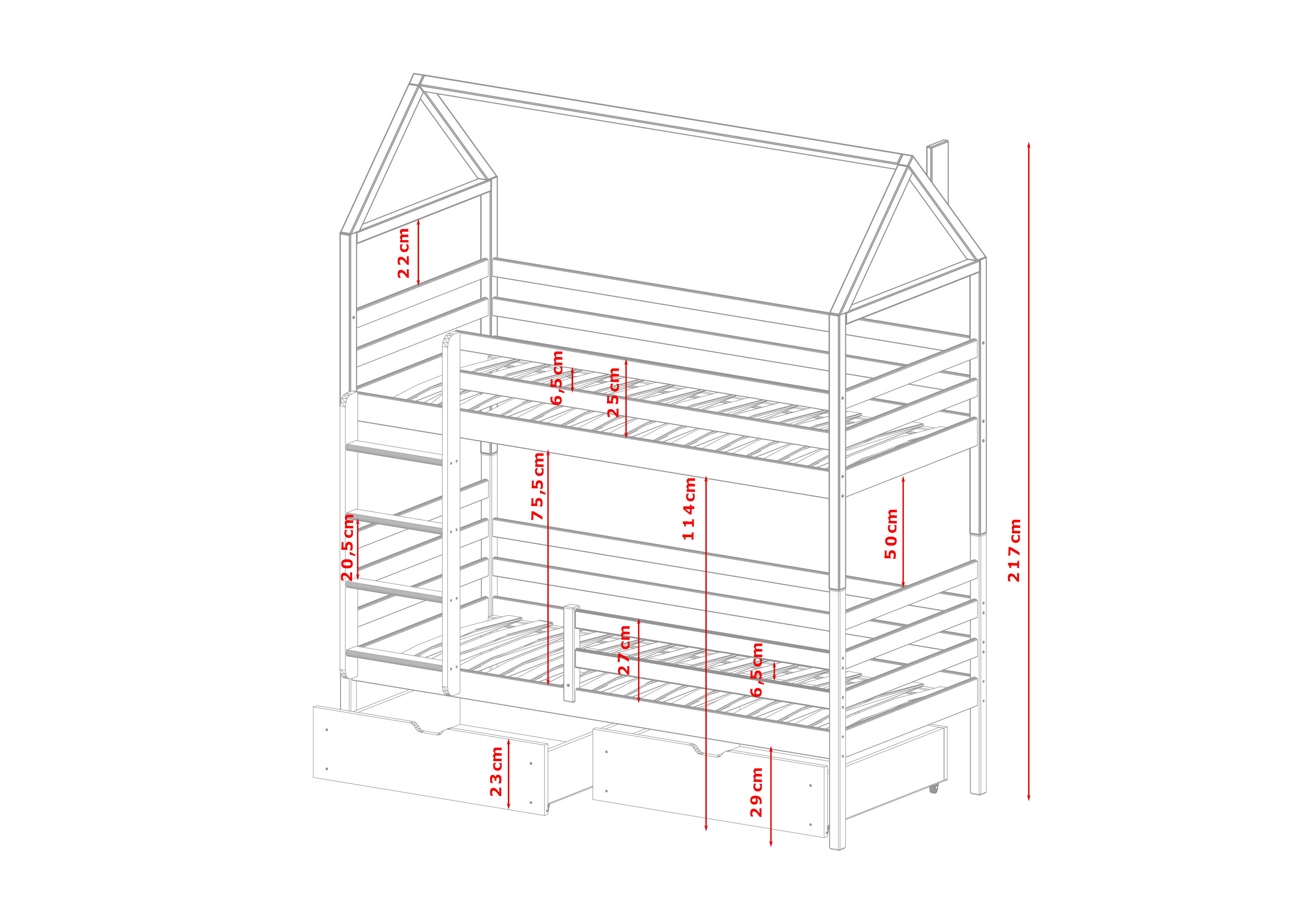 Stimulez votre imagination avec le lit cabane ALEX en gris, un complément parfait pour les enfants aventureux. Dimensionné pour 80x200, ce lit cabane en bois massif est aussi amusant que fonctionnel, faisant de l'heure du coucher une partie passionnante de chaque journée. Le design ludique du cadre de la maison stimule non seulement la créativité, mais sert également de toile parfaite pour les décorations et les récréations, transformant la chambre en un espace aux possibilités infinies.