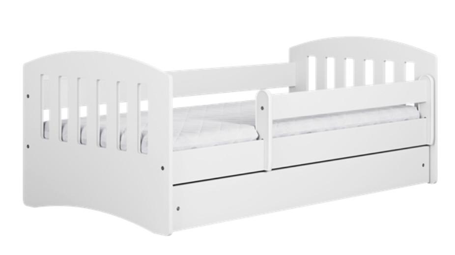 Lit enfant avec barrière de sécurité amovible blanc Klaky-Matelas mousse-80x140