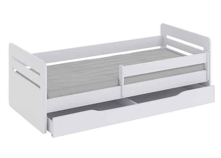 Lit enfant avec barrière de sécurité amovible blanc Moly-Matelas mousse-80x140