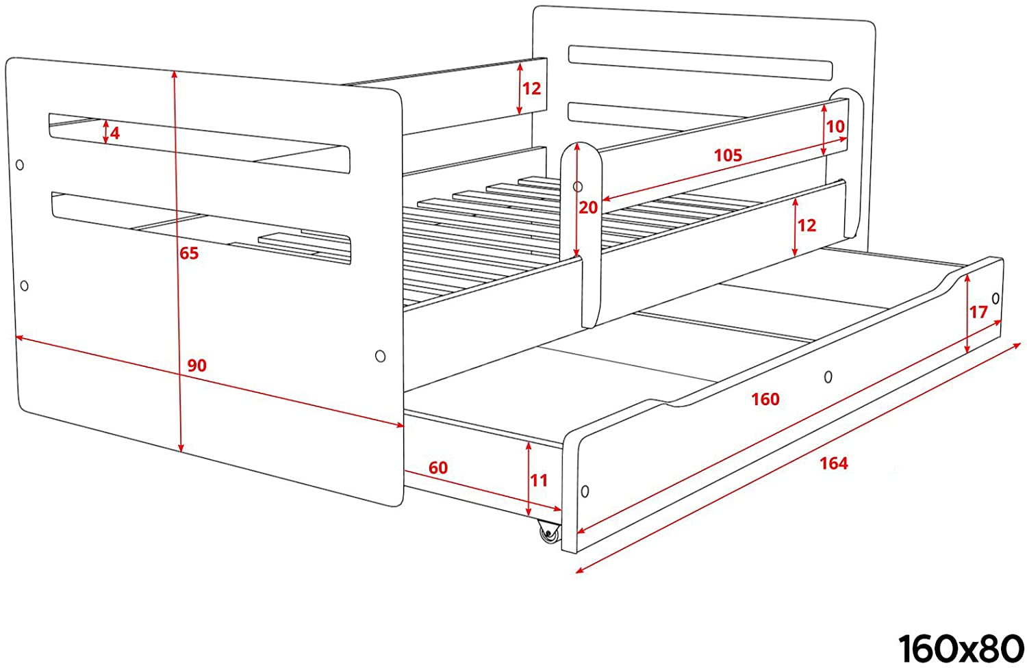 Découvrez notre lit enfant Moly, conçu pour offrir confort et sécurité à votre petit ange tout en ajoutant une touche de style à sa chambre. Voici ce que notre lit a à offrir : Couchages et dimensions : 140x80cm : L 144 x P 90 x H 65 cm 160x80cm : L 164 x P 90 x H 65 cm 180x80cm : L 184 x P 90 x H 65 cm Coloris : Blanc alpin Matériaux : Bois Européen Certifié FSC, garantissant une provenance responsable et durable. Les panneaux de stratifiés de 18 mm d'épaisseur assurent une construction solide et robuste. Sommier inclus : Livré avec un sommier en lattes de bouleau pour un soutien optimal du matelas. Tiroir de rangement (en option) : Disponible en option pour un espace de rangement supplémentaire. Veuillez noter qu'il ne peut pas accueillir de matelas. Vernis écologique : Le lit est verni trois fois avec des peintures écologiques, garantissant une finition de qualité et respectueuse de l'environnement. Sécurité : Équipé d'une barrière de sécurité amovible pour assurer la sécurité de votre enfant pendant son sommeil. Matelas en option : Vous avez la possibilité d'ajouter un matelas en mousse de polyuréthane de haute qualité, avec une housse amovible en tissu équipée d'une fermeture éclair. Charge maximale : Supporte jusqu'à 100 kg, assurant une durabilité et une robustesse optimales. Fabrication européenne : Fabriqué en Europe avec une garantie de 2 ans, ce lit répond aux normes de sécurité européennes les plus strictes pour une tranquillité d'esprit totale. Offrez à votre enfant un espace de sommeil confortable et sécurisé avec notre lit enfant Moly, alliant qualité, style et fonctionnalité. Option(s) sélectionnée(s) : - Tiroirs : Sans tiroir - Matelas : Matelas mousse - Couchage : 80x140 cm