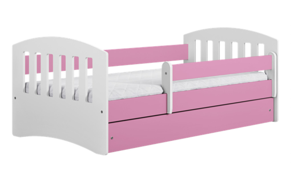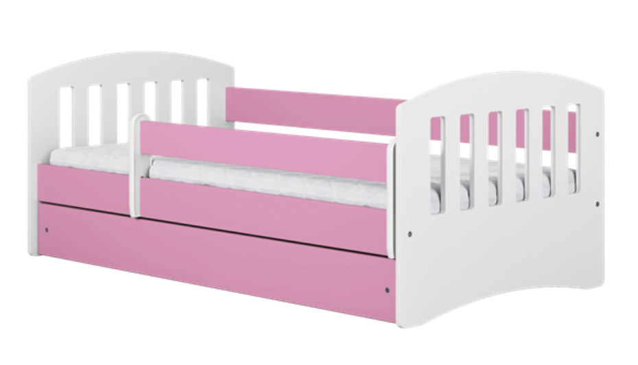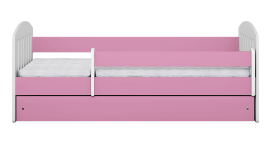 Lit enfant avec barrière de sécurité amovible rose Klaky-Matelas mousse-80x140