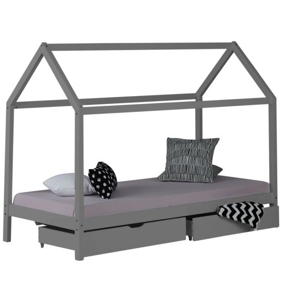 Lit Enfant avec Matelas Cadre de Lit Cabane Enfant 90x200 cm Gris Avec Tiroirs