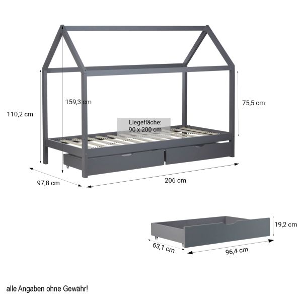 | Libellé | Lit Enfant avec Matelas Cadre de Lit Cabane Enfant 90x200 cm Gris Avec Tiroirs |