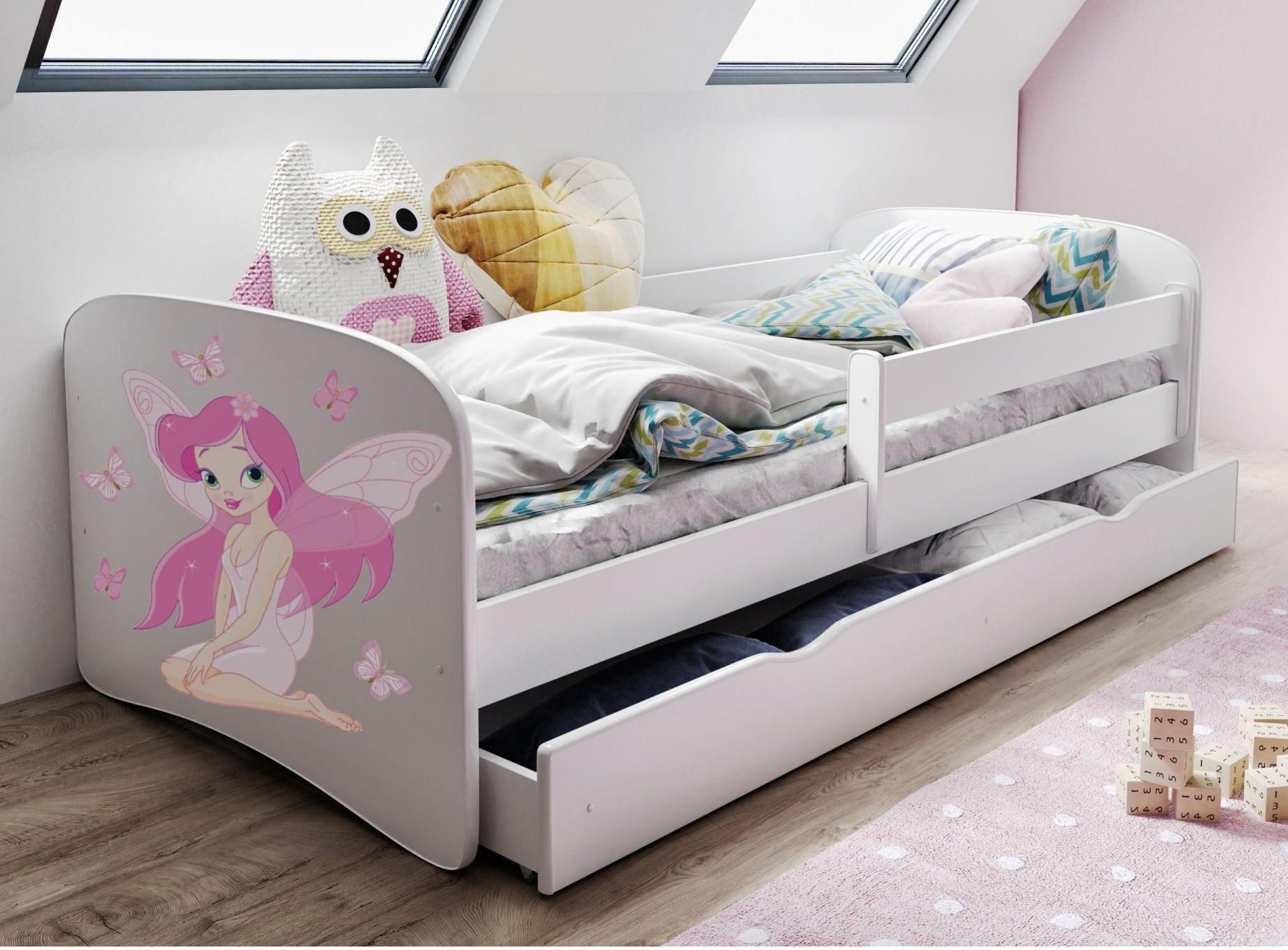 Lit enfant blanc fée avec papillons avec sommiers et barrière de sécurité amovible Drimy-80x180