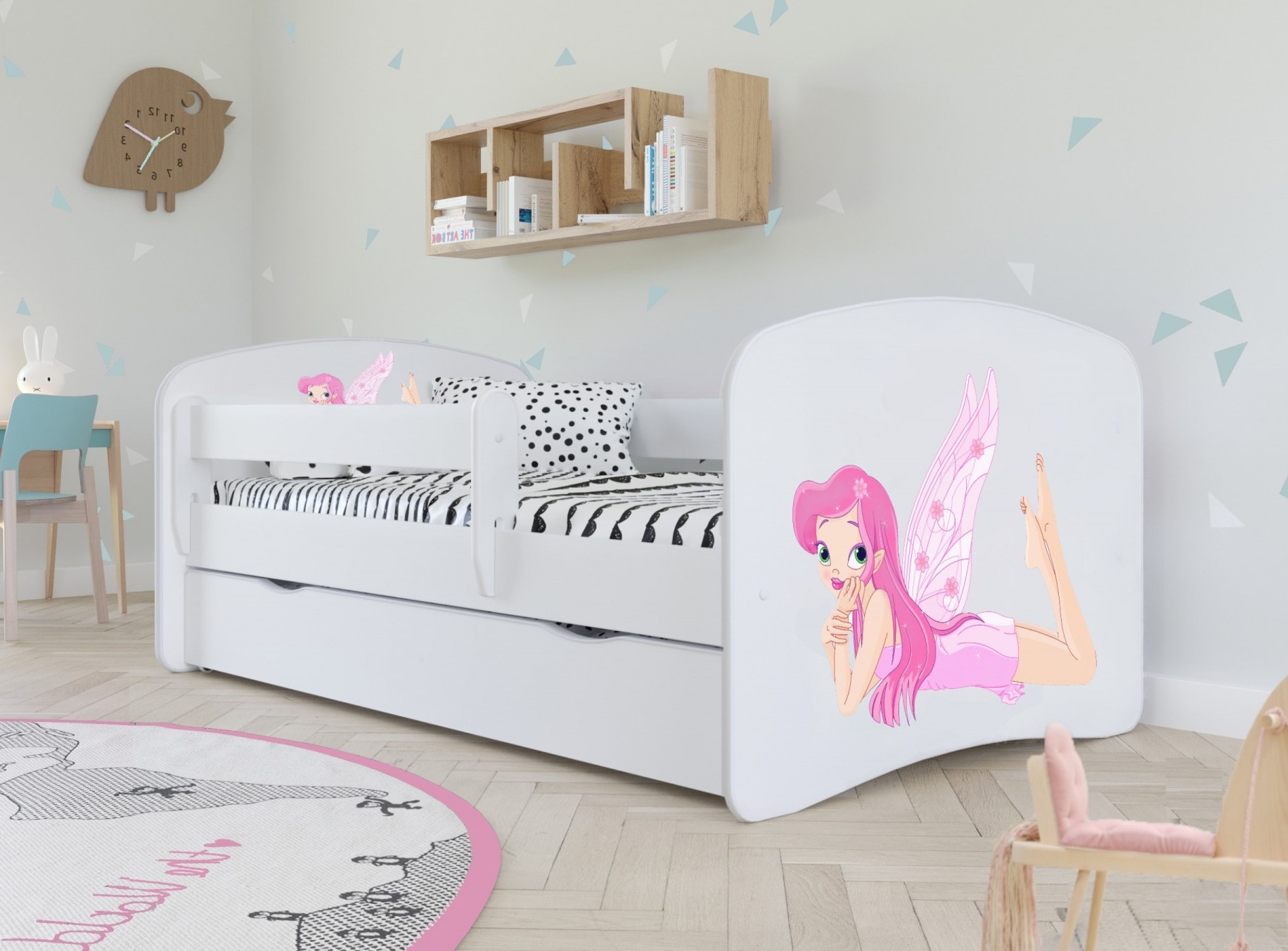 Lit enfant blanc petite fée avec sommiers et barrière de sécurité amovible Drimy-80x160-Tiroirs Avec tiro