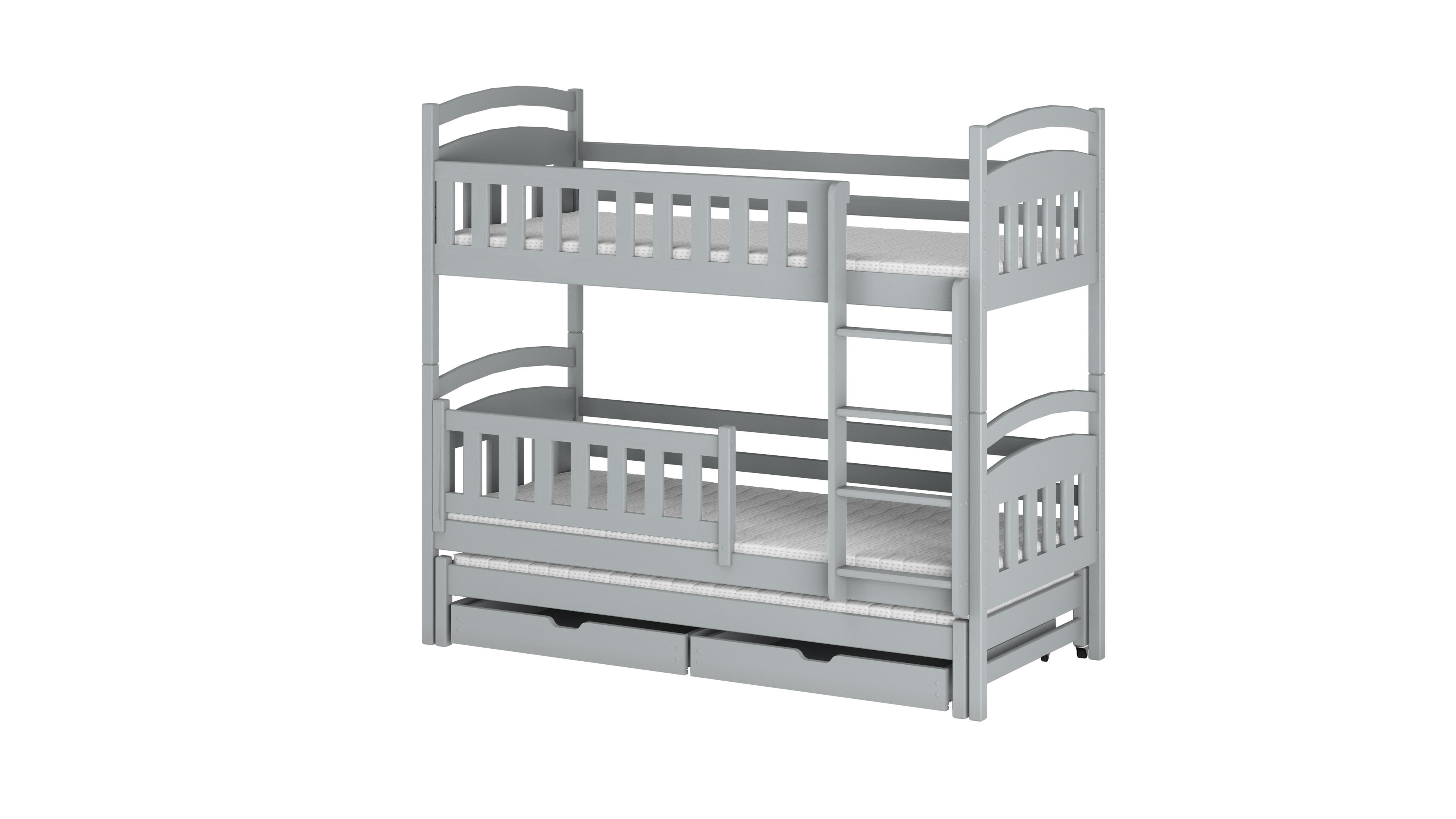 Le lit superposé BLANKA, proposé en gris, allie fonctionnalité et style. Ce lit superposé dispose d'un espace de couchage spacieux de 90 x 180 cm à chaque niveau, offrant suffisamment d'espace. Fabriqué à partir de bois massif robuste, il assure durabilité et stabilité pour un usage quotidien. La conception du lit comprend 2 tiroirs intégrés, parfaits pour ranger la literie, les jouets ou les vêtements. La construction solide et les solutions de rangement pratiques du lit superposé BLANKA en font un choix à la fois pratique et chic.