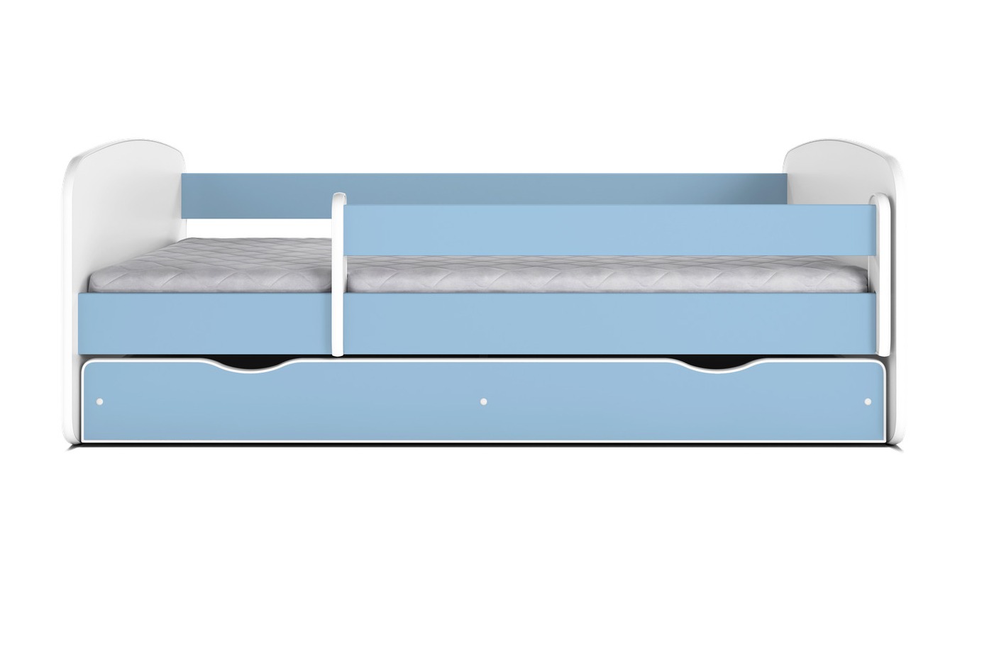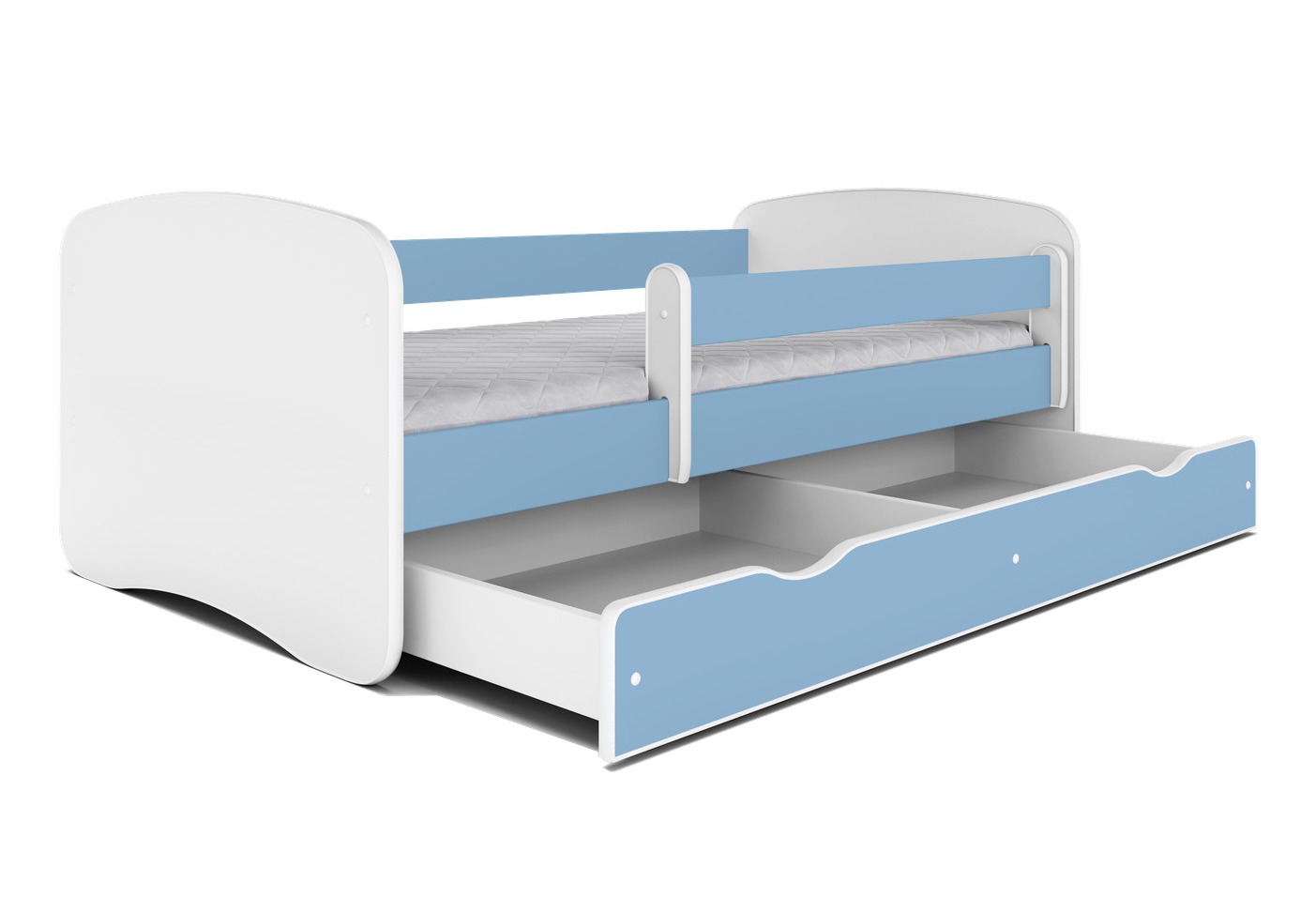 Libellé Lit enfant bleu avec sommiers et barrière de sécurité amovible Drimy-80x180-Tiroirs Avec tiroir