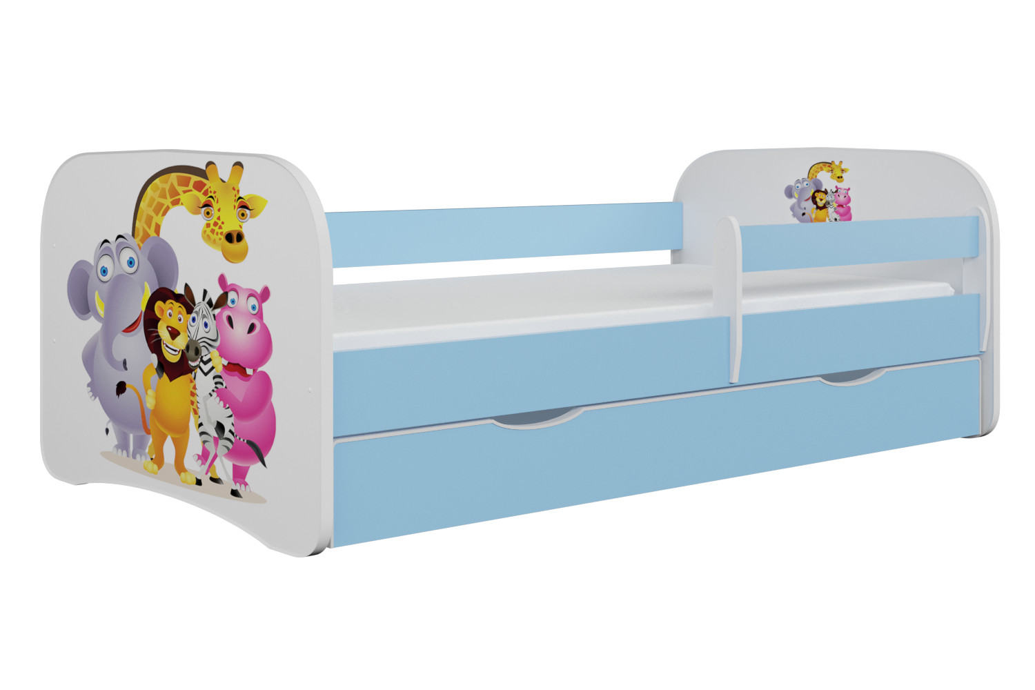 Lit enfant bleu Zoo avec sommiers et barrière de sécurité amovible Drimy-80x180