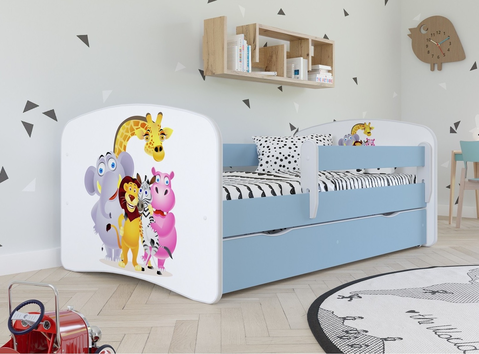 | Libellé | Lit enfant bleu Zoo avec sommiers et barrière de sécurité amovible Drimy-80x180 |