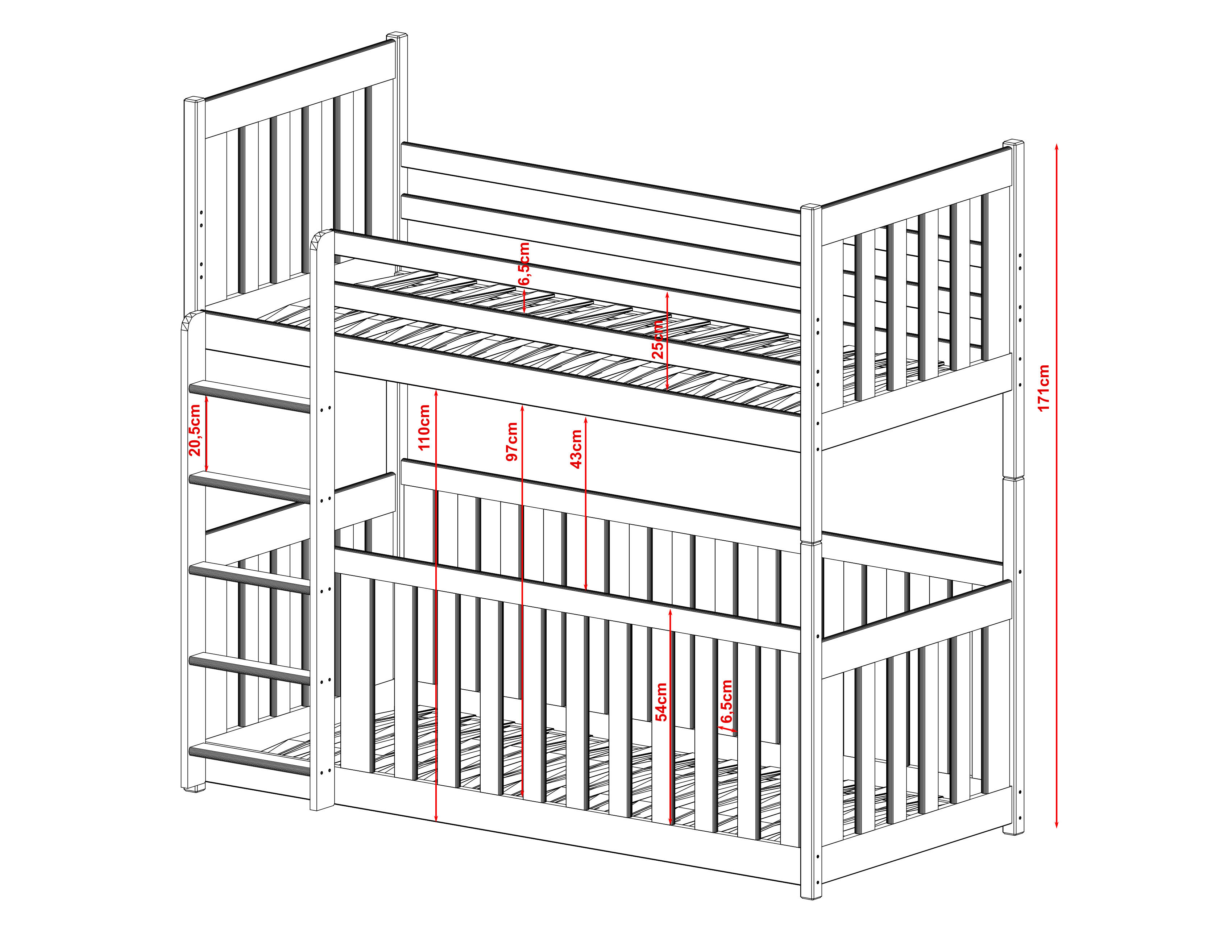 Le lit superposé CRIS, présenté en Blanc, est une solution idéale pour optimiser l'espace. Ce lit superposé dispose d'un généreux espace de couchage de 80 x 190 cm pour chaque niveau. Fabriqué en bois massif, le lit superposé CRIS est conçu pour assurer un environnement de sommeil sûr à vos enfants. Le design classique du lit lui permet de se fondre parfaitement dans différents styles d'intérieur, ce qui en fait un choix polyvalent pour votre maison. Grâce à son utilisation efficace de l'espace vertical, le lit superposé CRIS est parfait pour les frères et sœurs partageant une chambre.