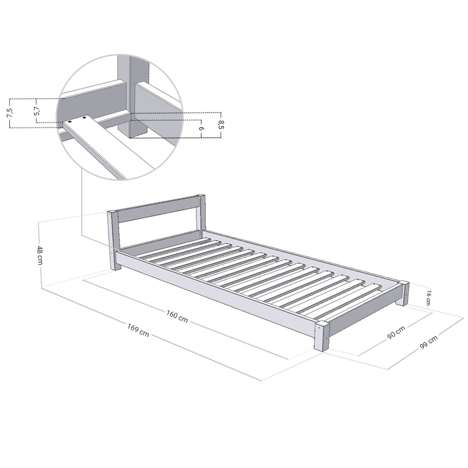 Dimensions de couchage 90 x 160 cm