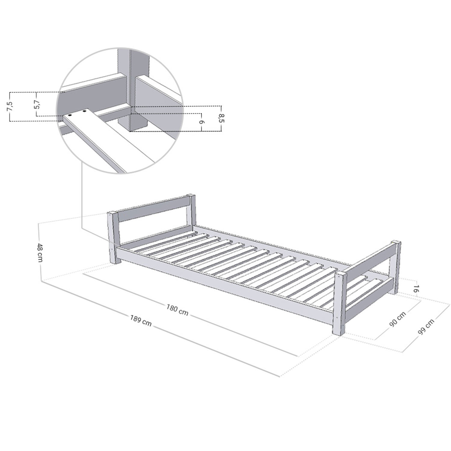 Dimensions de couchage 90 x 180 cm