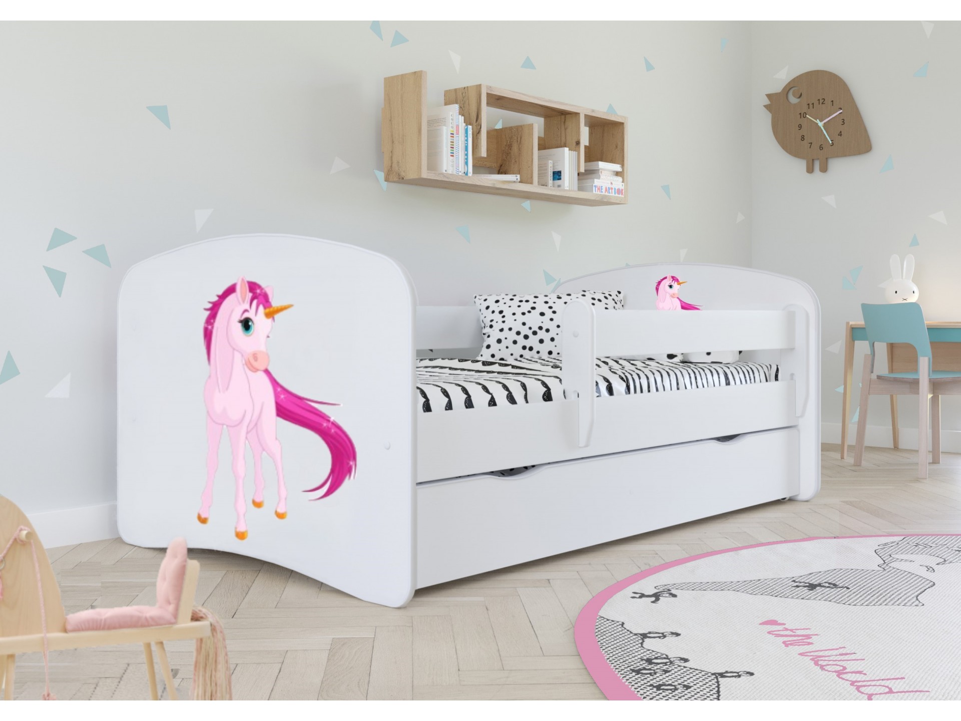Lit enfant Licorne avec sommiers et barrière de sécurité amovible Drimy-Matelas mousse-80x180-Tiroirs Ave