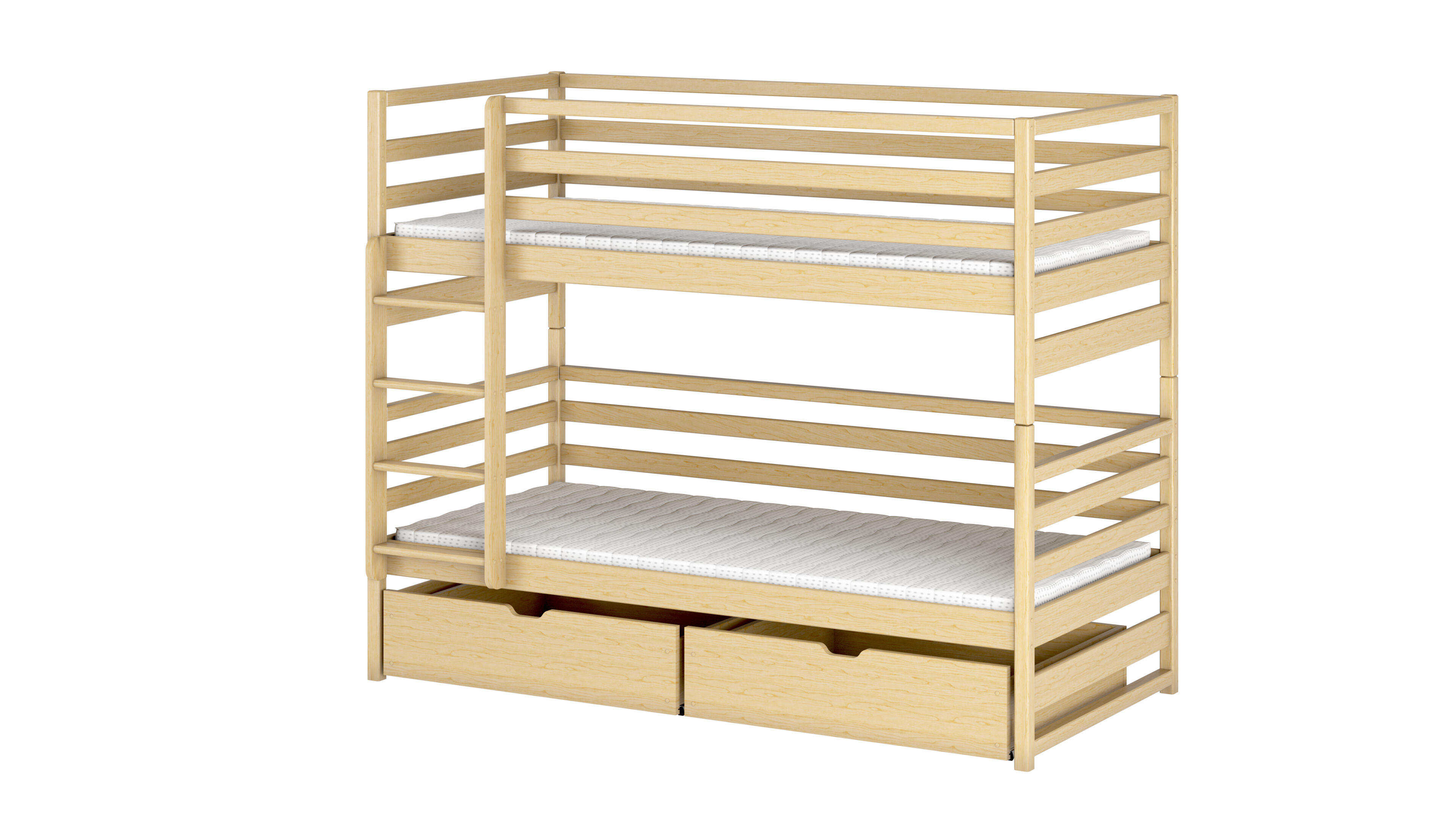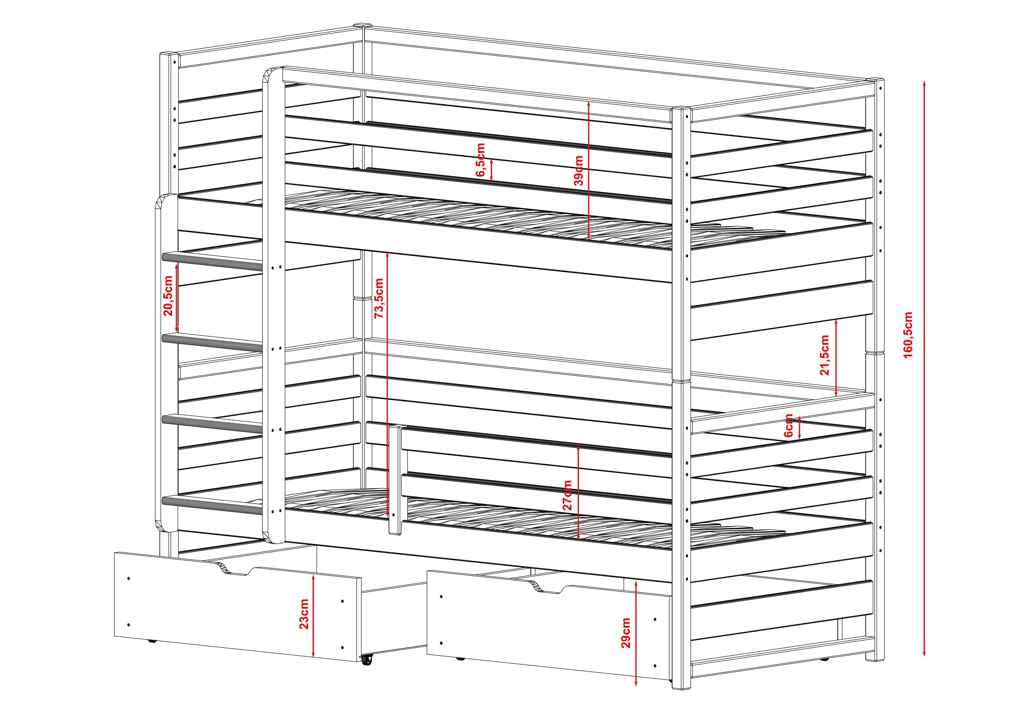 Le lit superposé LOFT, présenté en Beige, offre une solution élégante et peu encombrante pour toute chambre d'enfant. Fabriqué à partir de bois massif, ce lit superposé robuste assure fiabilité et longévité. Il dispose d'un espace nuit de 90 x 180 cm qui offre suffisamment d'espace pour des nuits reposantes. Deux tiroirs intégrés offrent un rangement pratique pour les jouets, les vêtements et le linge de maison, aidant ainsi à garder la pièce bien rangée et organisée. Le lit superposé LOFT allie style, confort et praticité, ce qui en fait un choix parfait pour les familles.