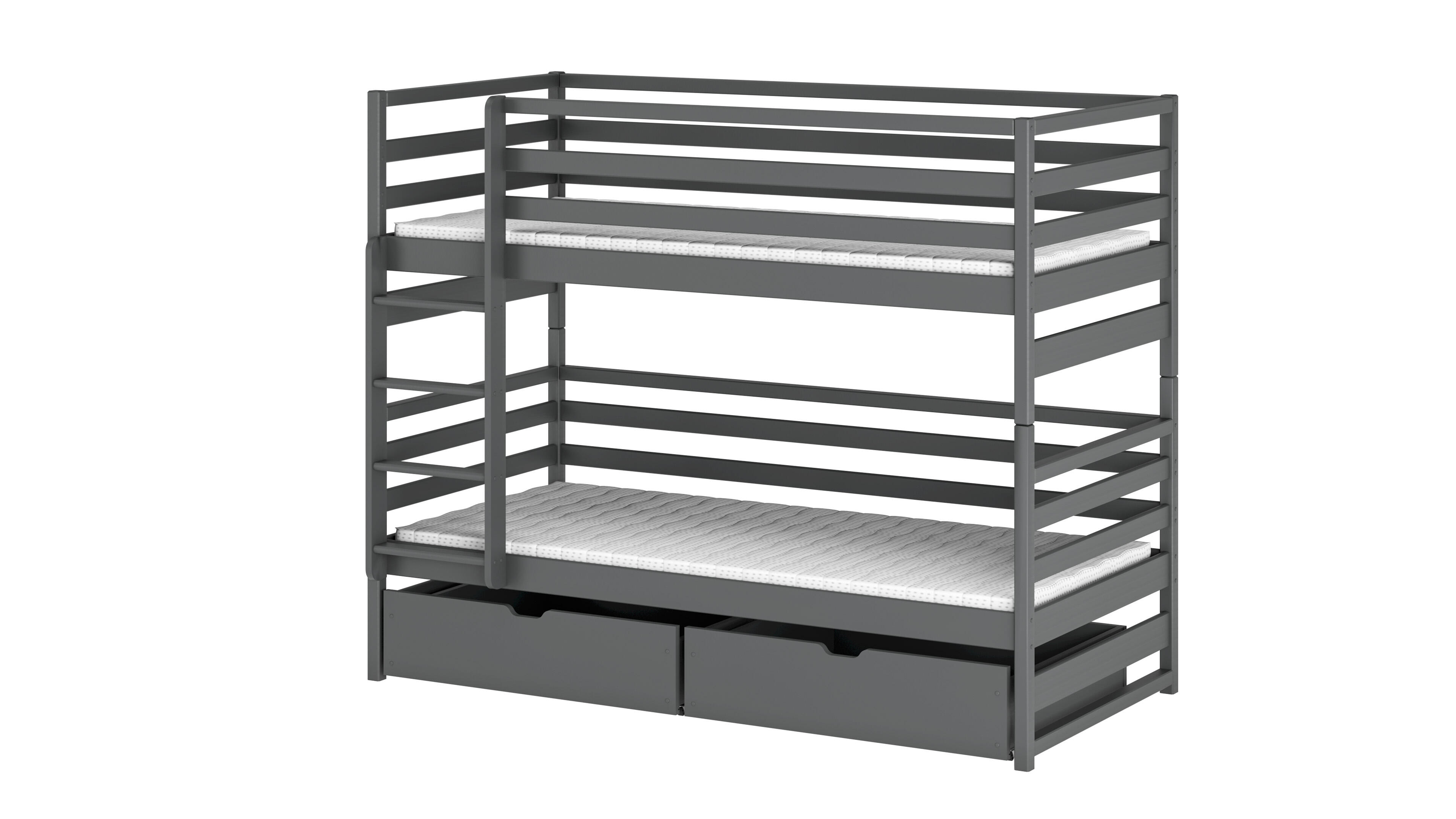 Le lit superposé LOFT, présenté en Graphite, offre une solution élégante et peu encombrante pour toute chambre d'enfant. Fabriqué à partir de bois massif, ce lit superposé robuste assure fiabilité et longévité. Il dispose d'un espace nuit de 90 x 180 cm qui offre suffisamment d'espace pour des nuits reposantes. Deux tiroirs intégrés offrent un rangement pratique pour les jouets, les vêtements et le linge de maison, aidant ainsi à garder la pièce bien rangée et organisée. Le lit superposé LOFT allie style, confort et praticité, ce qui en fait un choix parfait pour les familles.