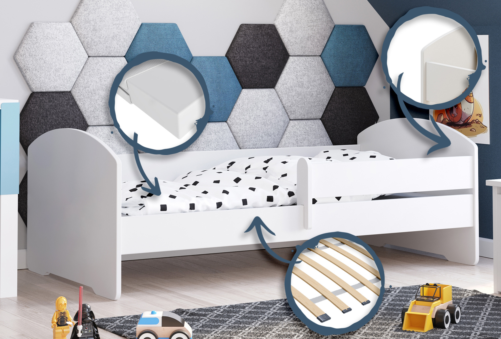 Le modèle LUK avec garde-corps est une conception simple mais efficace qui conviendra parfaitement à une chambre d'enfant, aussi bien pour les garçons que pour les filles. Nos lits sont faits avec soin et attention à chaque détail. Ils disposent, entre autres, de bords lisses qui assurent une sécurité maximale aux plus jeunes utilisateurs, et d'une barrière mobile qui assure un sommeil en toute sécurité.
