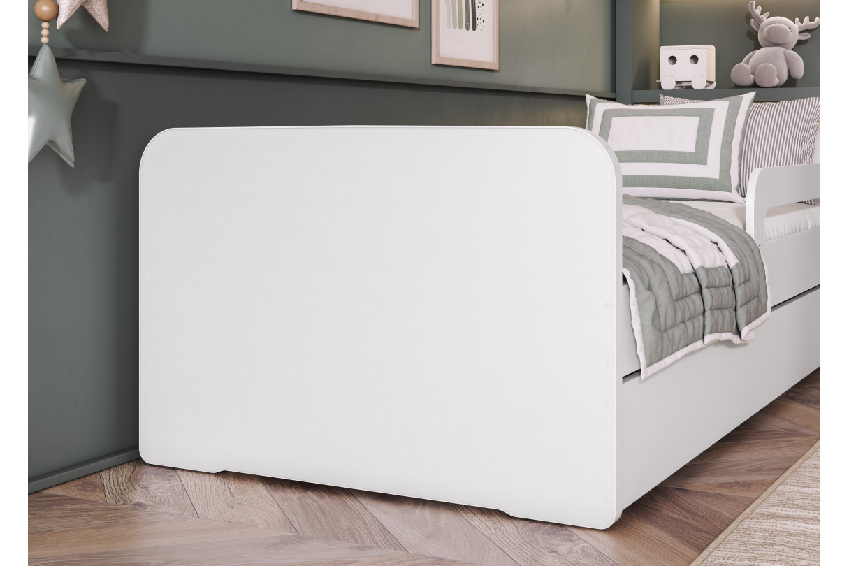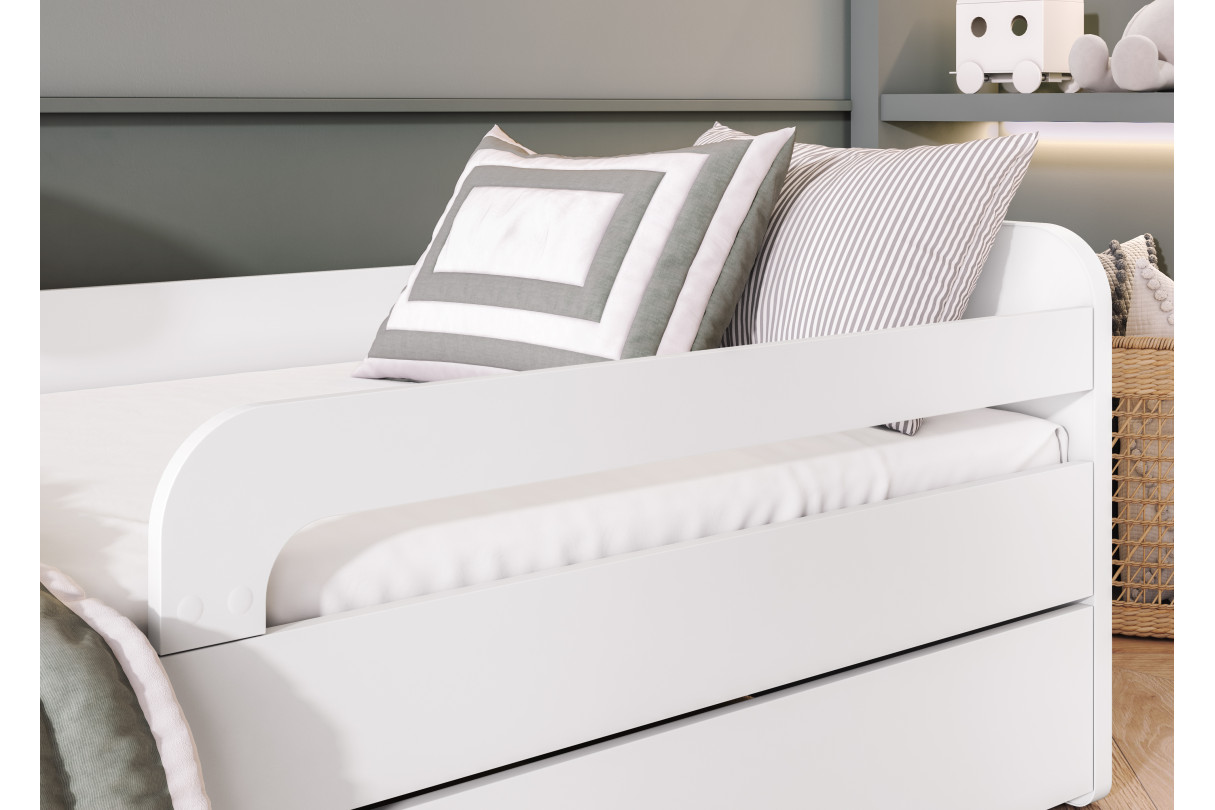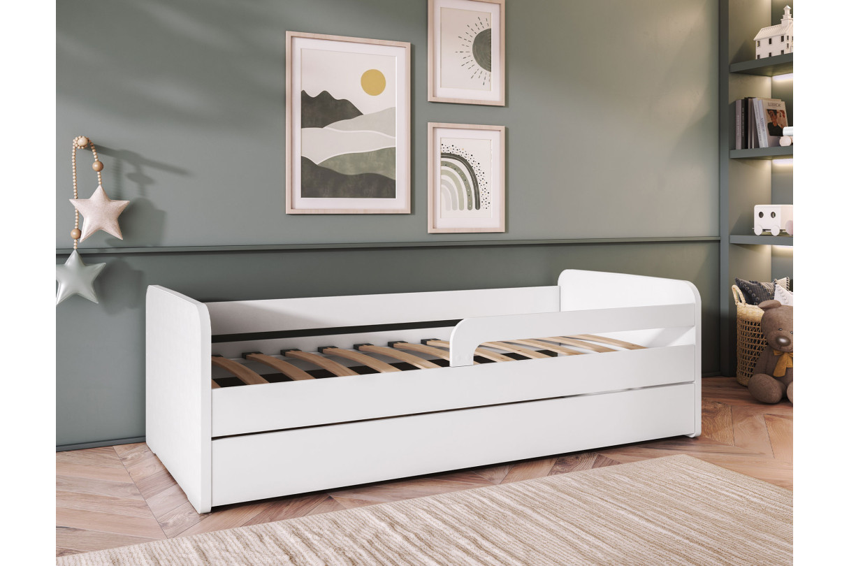 Lit enfant NAHLA ? style épuré et sécurité maximale Apportez à la chambre de votre enfant une touche de légèreté grâce au lit NAHLA au design simple et tendance. Son coloris blanc s'harmonise à tous les styles d'intérieur, qu?il s?agisse d'un univers scandinave, contemporain ou classique.