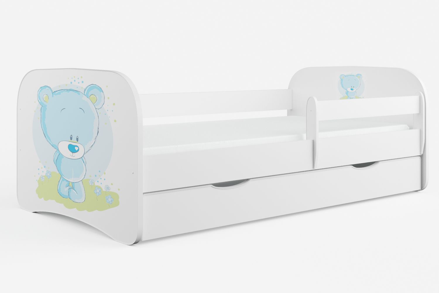 Lit enfant nounours avec sommiers et barrière de sécurité amovible Drimy-Matelas mousse-70x140