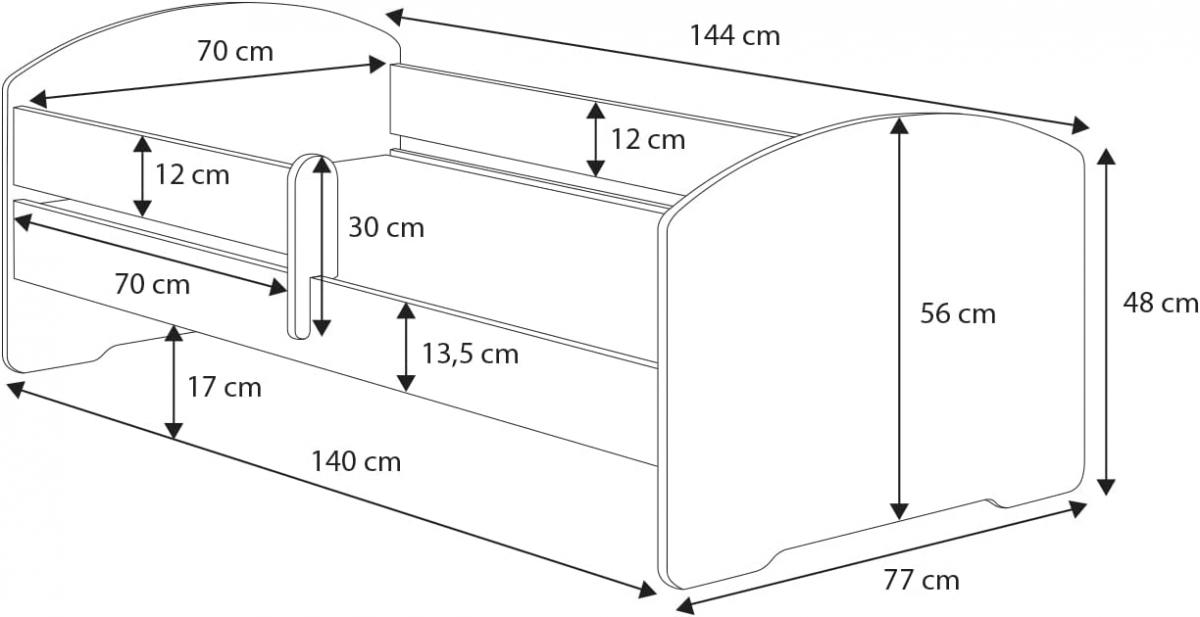 Le modèle Sam avec une balustrade est un design simple mais efficace qui sera parfait pour une chambre pour enfants, à la fois pour un garçon et une fille. Nos lits sont faits avec soin et attention à chaque détail. Ils ont, entre autres, des bords lisses qui garantissent une sécurité maximale pour les plus jeunes utilisateurs et une barrière mobile qui assurera un sommeil sûr. Spécification: Les bords sont montés sans colle, ce qui assure une durabilité et une force plus longues du lit. Les bords sont arrondis et protégés par un bord PVC. Le lit peut supporter des charges allant jusqu'à 110 kg! Hauteur suffisante des côtés du lit pour l'empêcher de tomber. Cadre en lattes de ressort dans le système flexible. La structure du lit est faite de planche de meubles de haute qualité, ce qui le rend stable et durable. Le produit est composé de matières premières certifiées. Possibilité d'installer des rails de sécurité sur le côté droit ou gauche du lit Matelas inclus.