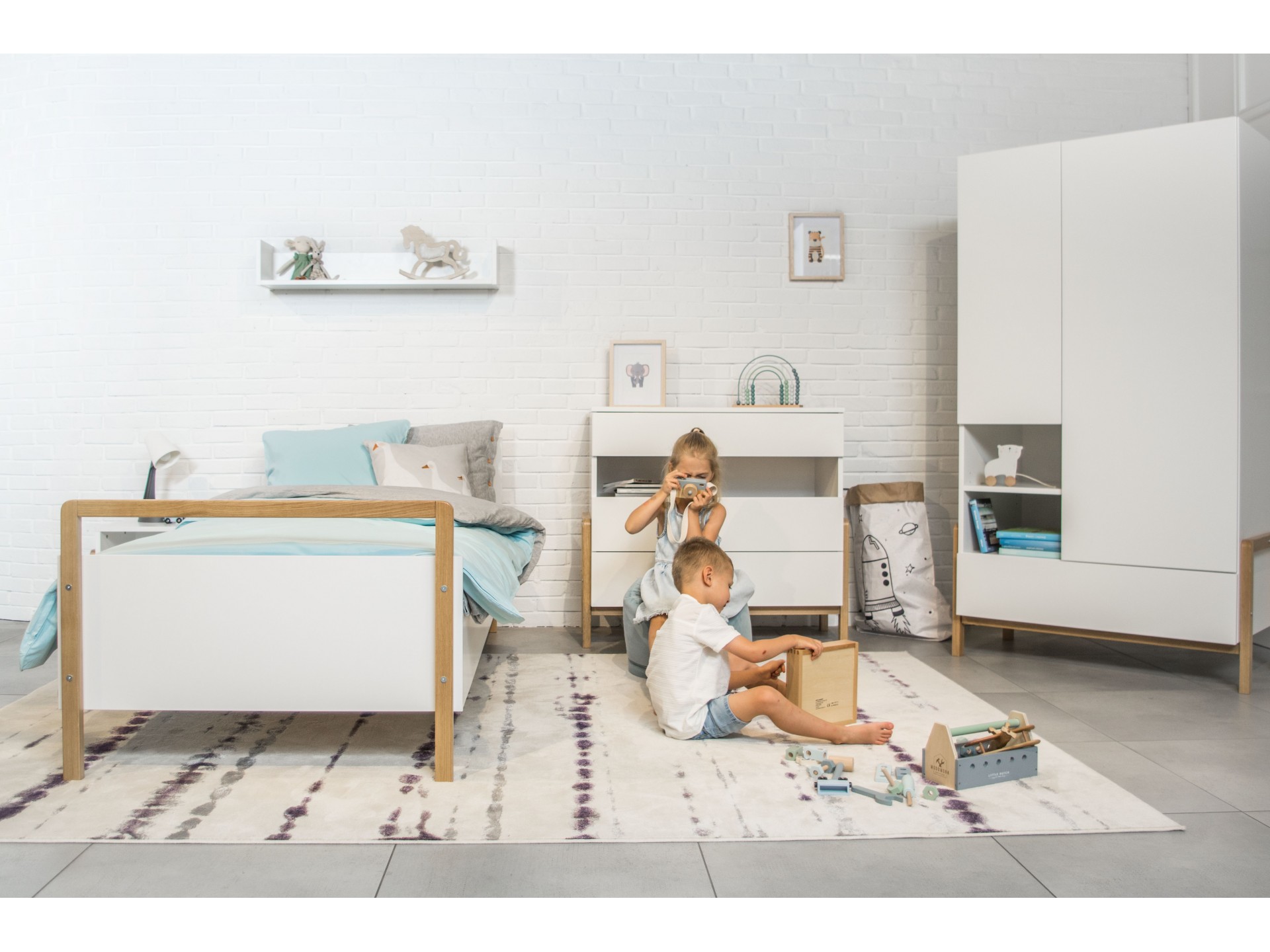 | Libellé | Lit enfant scandinave blanc et bois de chêne vernis Vanka 80x180-Matelas mousse |