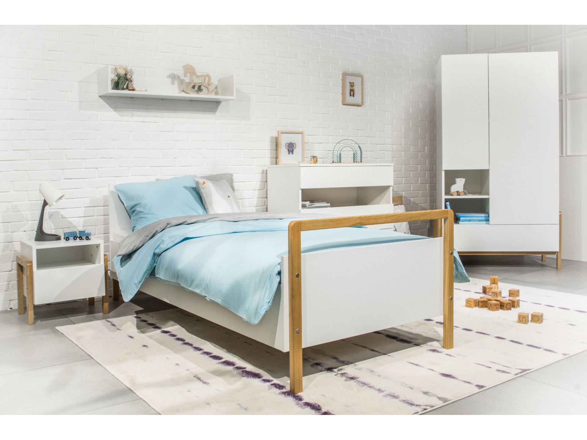 Lit enfant scandinave blanc et bois de chêne vernis Vanka 80x180-Matelas mousse