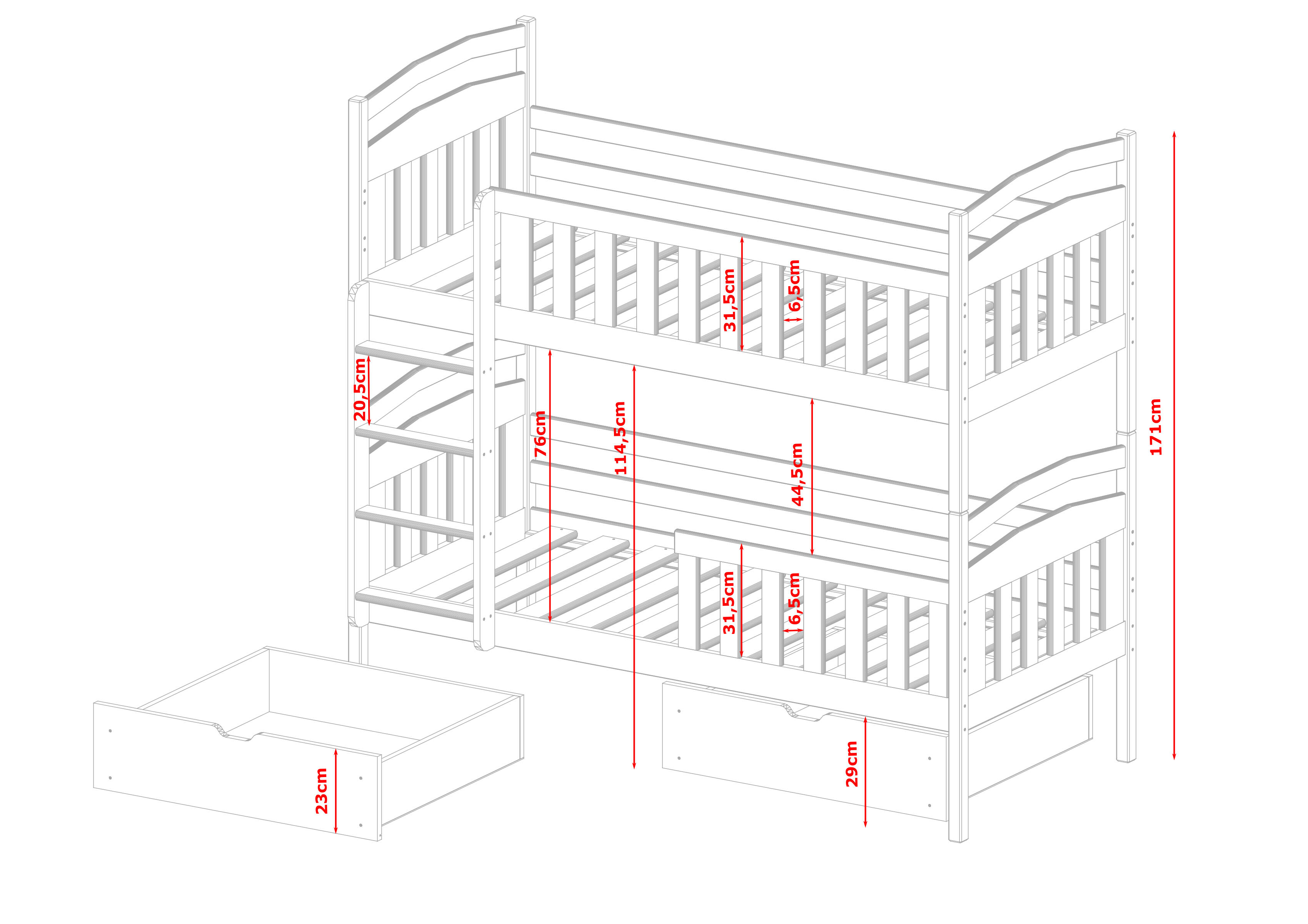 Le lit superposé SHINE en blanc est conçu pour offrir du confort et économiser de l'espace dans n'importe quelle chambre d'enfant. Il dispose de deux espaces de couchage de 80 x 190 cm, idéaux pour les frères et sœurs ou les soirées pyjama, construits sur une structure en bois massif robuste qui assure durabilité et stabilité. Le design élégant et les couleurs vives ajoutent une touche vivante à la décoration de la chambre, ce qui en fait un favori des enfants. Avec sa construction robuste, le lit superposé SHINE promet des années d'utilisation fiable tout en conservant une apparence élégante que les enfants adoreront.