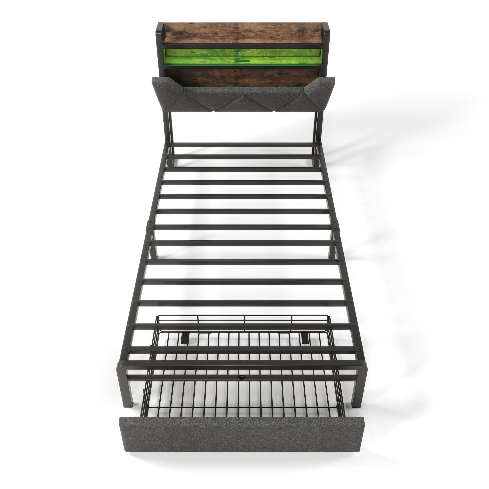 | Libellé | Lit Enfant Simple 90x200cm avec LED, Tiroir, USB/Type-C et Tête de Lit Rangement, Structure Métal avec Sommier, Lin, Gris |