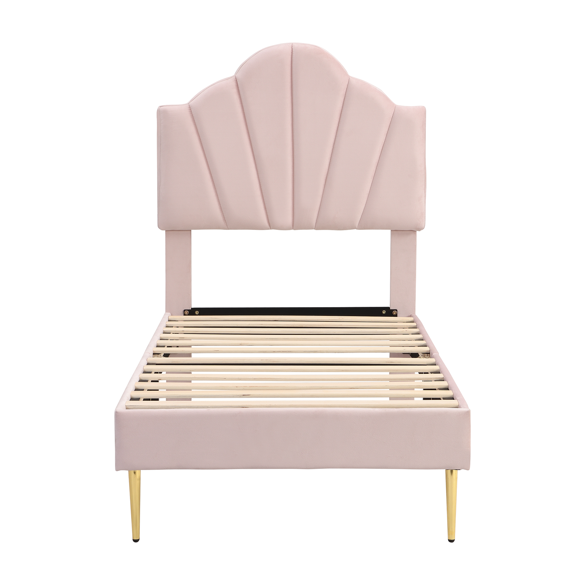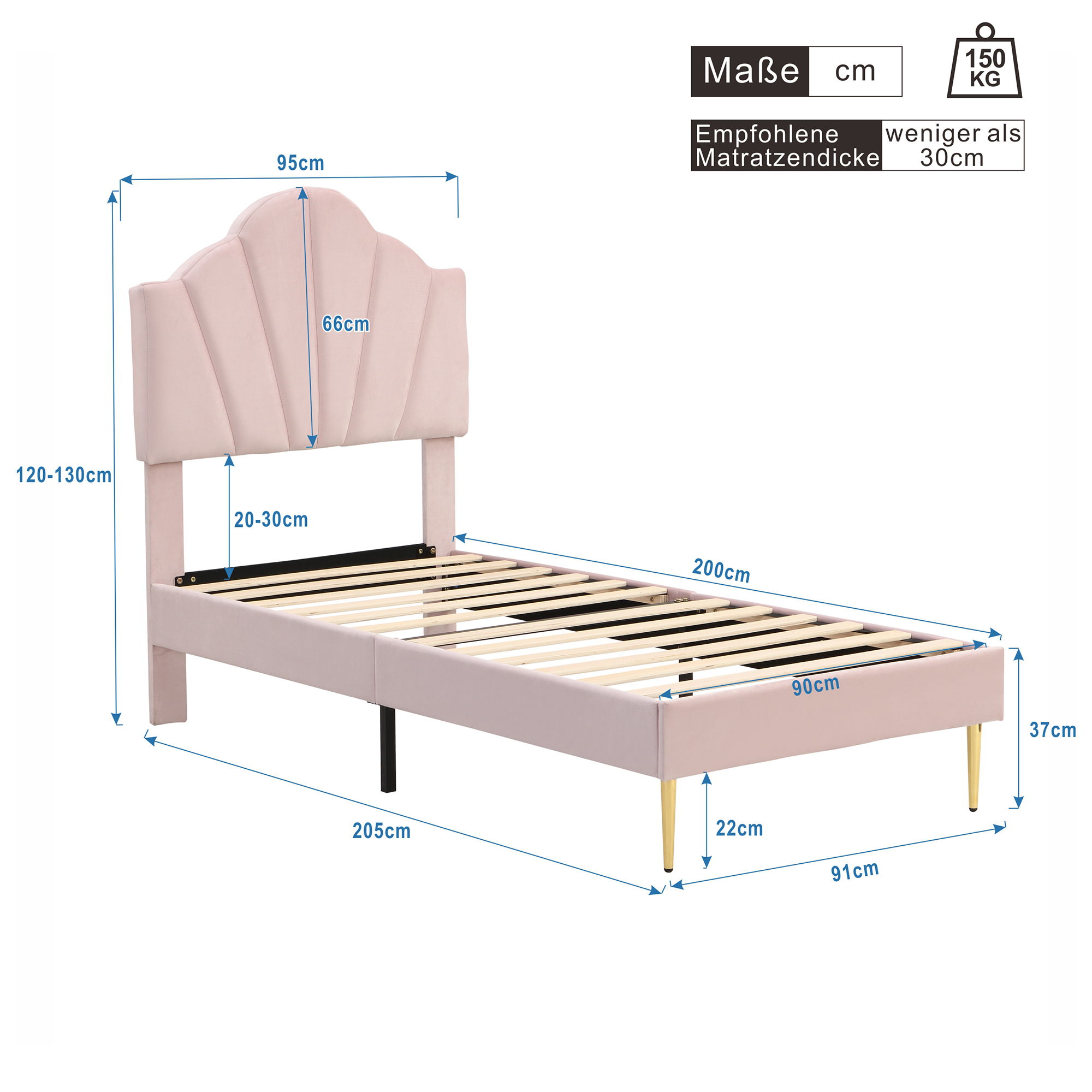 | Libellé | Lit Enfant Simple 90x200cm – Tête de Lit Réglable Style Coquillage avec Sommier, Velours, Rose, sans Matelas |