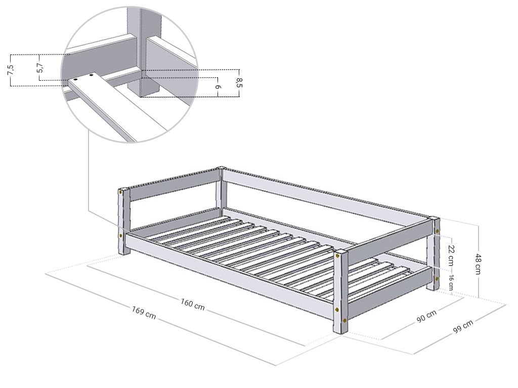 Ce lit Montessori “STUDY” permet à votre enfant de gagner en autonomie en toute sécurité ! Fabriqué à la main en Europe, ce lit est conçu pour que votre enfant puisse aller et venir dans son lit facilement . Le lit a une capacité de charge de 150 kg. Existe en 12 coloris (blanc, verni, beige, gris clair, gris foncé, vert sauge, rose pastel, rouge brique, bleu marine, vert pétrole, bleu clair, non verni) et en 10 dimensions pour s'adapter à l'âge de votre enfant (80x160 cm, 80x180 cm, 90x160 cm, 90x180 cm, 90x190 cm, 90x200 cm, 120x180 cm, 120x190 cm, 120x200 cm, 140x200 cm). Couleurs 100% naturelles, anti-allergiques . Un matelas entre 15 et 23 cm d'épaisseur est recommandé. Le matelas n'est pas fourni. Benlemi est une entreprise familiale spécialisée dans le mobilier en bois et notamment l'équipement des chambres d'enfant. Cette entreprise européenne dessine et fabrique dans sa propre usine de fabrication les produits proposés. Le vernissage est fait à la main avec des peintures 100% naturelles et anti-allergiques. Le bois utilisé est tracé et rigoureusement sélectionné et la chaîne de fabrication est labellisée PEFC. Produit à monter soi-même. Un manuel de montage est disponible. Garanti 5 ans. Dimensions totales du lit : 48 x 99 x 169 cm (hauteur x largeur x longueur). Des délais de fabrication et de livraison peuvent intervenir.
