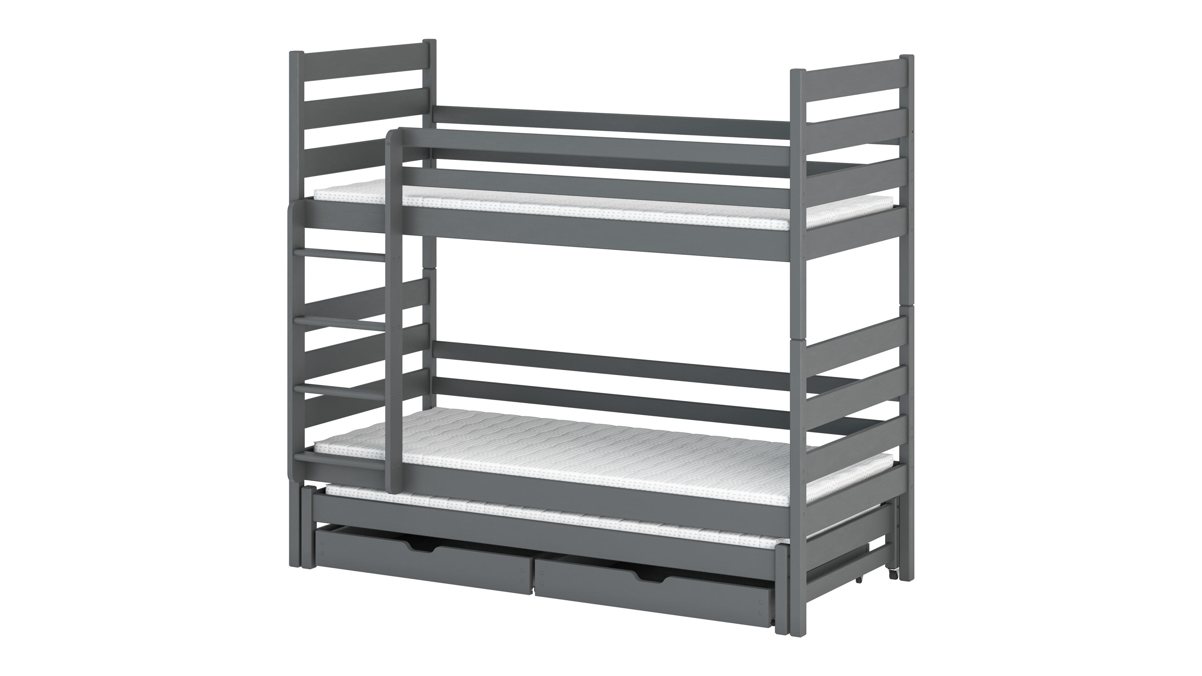 Le lit superposé TOMI est un ajout charmant à toute chambre d'enfant, disponible dans un graphite apaisant. Sa surface de couchage généreuse de 80x180cm assure une nuit de sommeil confortable à vos petits. Fabriqué à partir de bois massif, il promet durabilité et stabilité, offrant ainsi une tranquillité d’esprit aux parents. Les deux tiroirs intégrés offrent un grand espace de rangement. Avec son design charmant et ses caractéristiques pratiques, le lit superposé TOMI est un excellent choix pour créer un environnement de sommeil confortable et fonctionnel pour les enfants.