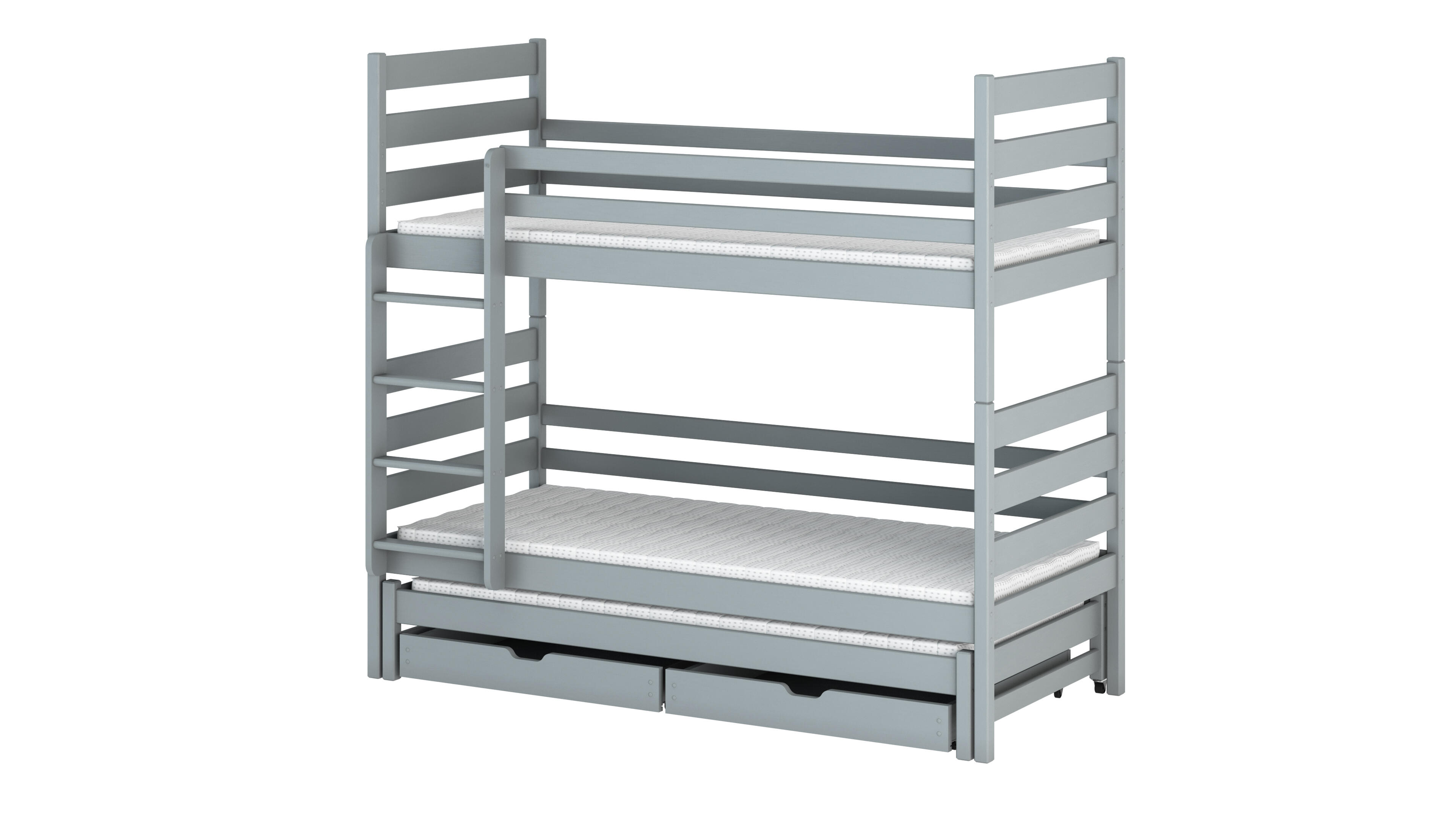Le lit superposé TOMI est un ajout charmant à toute chambre d'enfant, disponible dans un gris apaisant. Sa surface de couchage généreuse de 80x180cm assure une nuit de sommeil confortable à vos petits. Fabriqué à partir de bois massif, il promet durabilité et stabilité, offrant ainsi une tranquillité d’esprit aux parents. Les deux tiroirs intégrés offrent un grand espace de rangement. Avec son design charmant et ses caractéristiques pratiques, le lit superposé TOMI est un excellent choix pour créer un environnement de sommeil confortable et fonctionnel pour les enfants.