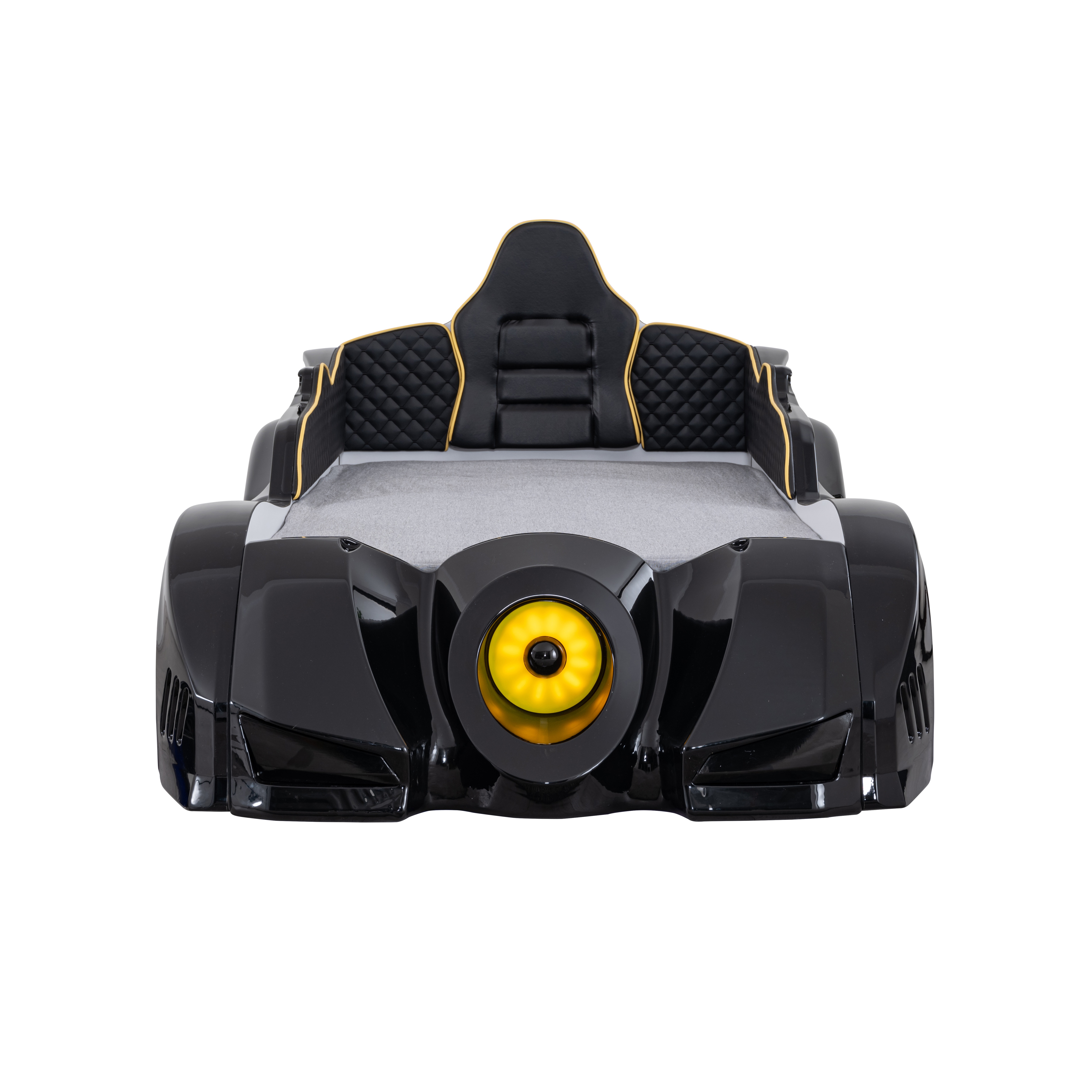 Le lit enfant voiture de Bat mobile noir est un lit amusant et interactif pour les enfants. Il est conçu pour ressembler à une vraie voiture de police, avec des bruitages, des lumières à LED et des portes qui s'ouvrent. Les enfants adoreront se glisser dans leur propre voiture de police pour une nuit d'aventure. Les bruitages ajoutent une touche de réalisme supplémentaire, tandis que les lumières à LED créent une atmosphère amusante et accueillante pour la nuit. Les portes s'ouvrant permettent aux enfants de monter et de descendre facilement de leur lit, ce qui renforce leur sentiment d'autonomie. En gros, le lit enfant voiture de police est une excellente option pour les enfants qui aiment les aventures et les activités amusantes. Portes ouvrantes Effets sonores Feux avant Led aux roues Télécommande Rembourrage en PU sur les côtés et à l'arrière Dimension matelas (non fourni) : 90 x 190cm Dimension du lit monté : 230 x 132 x 59cm Lattes fixées directement sur le lit Plastique ABS brillant (le même que celui des légos). Bloc d'alimentation en basse tension (12 volts) : ne chauffe pas et consommation électrique anecdotique. Garantie 2 ans