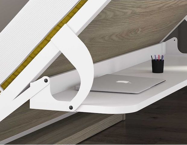 Lit escamotable 90x190 P 34cm anthracite avec étagères et bureau Miko